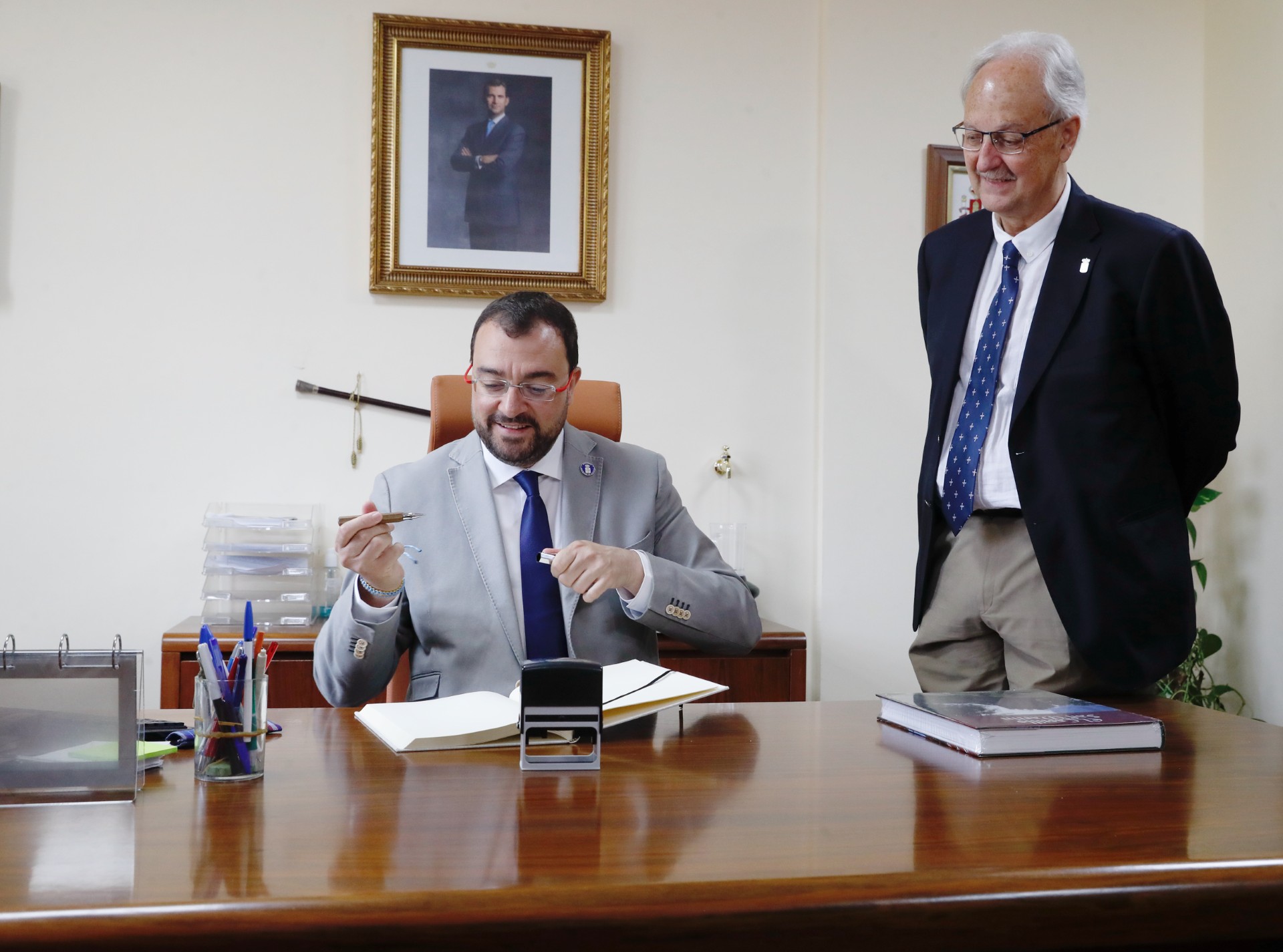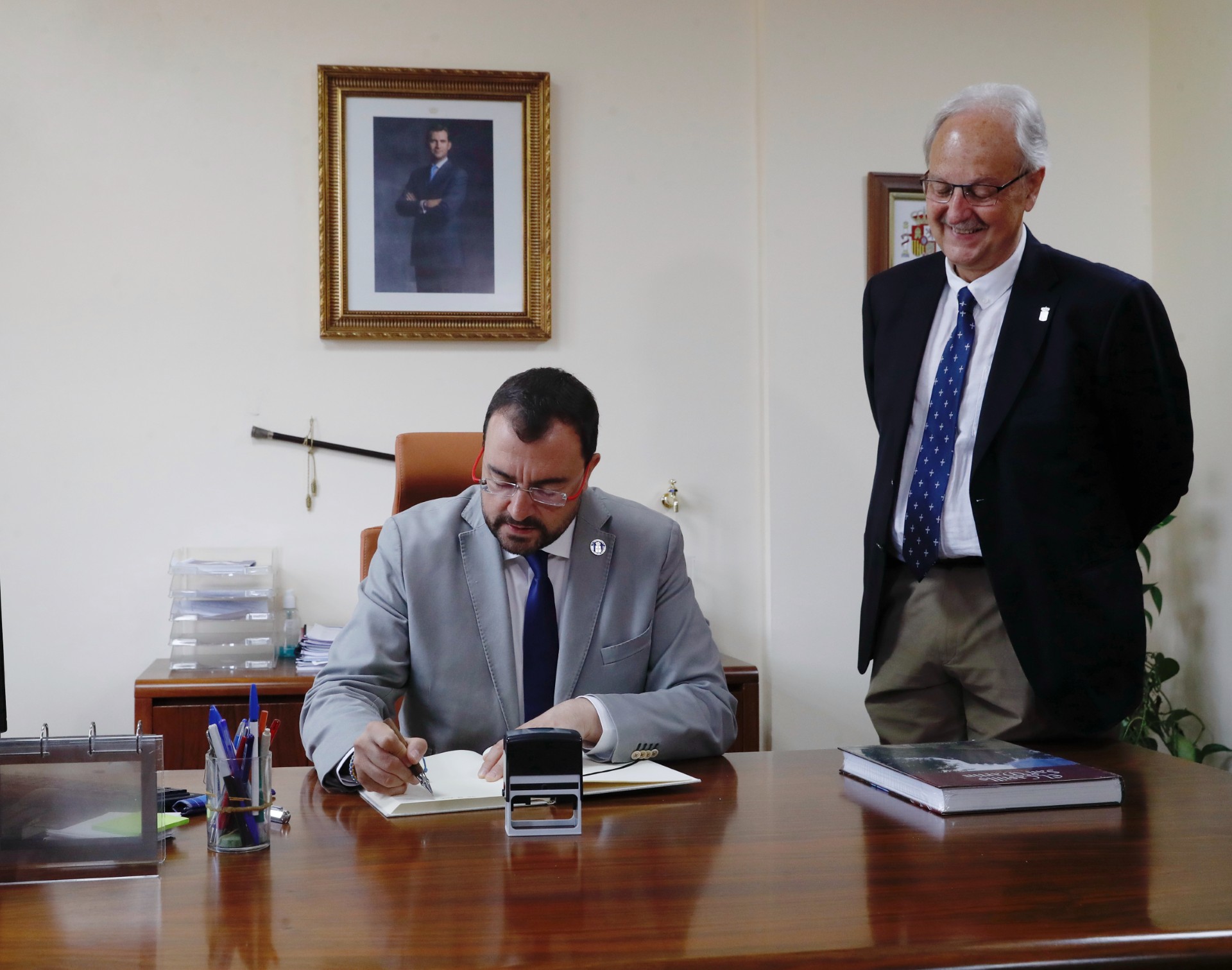 El jefe del Ejecutivo, que esta mañana ha presidido la reunión del Consejo de Gobierno en Soto del Barco, ha visitado después varios equipamientos educativos del municipio, como la obra de la Escuelina La Veiga, una de las primeras de la red autonómica y que comenzará a funcionar en octubre tras una inversión de cerca de 300.000 euros, o el Colegio Público Jimi Pérez Lorente, donde se ha descubierto una placa con el nuevo nombre del centro, que rinde homenaje al fallecido alcalde del concejo.