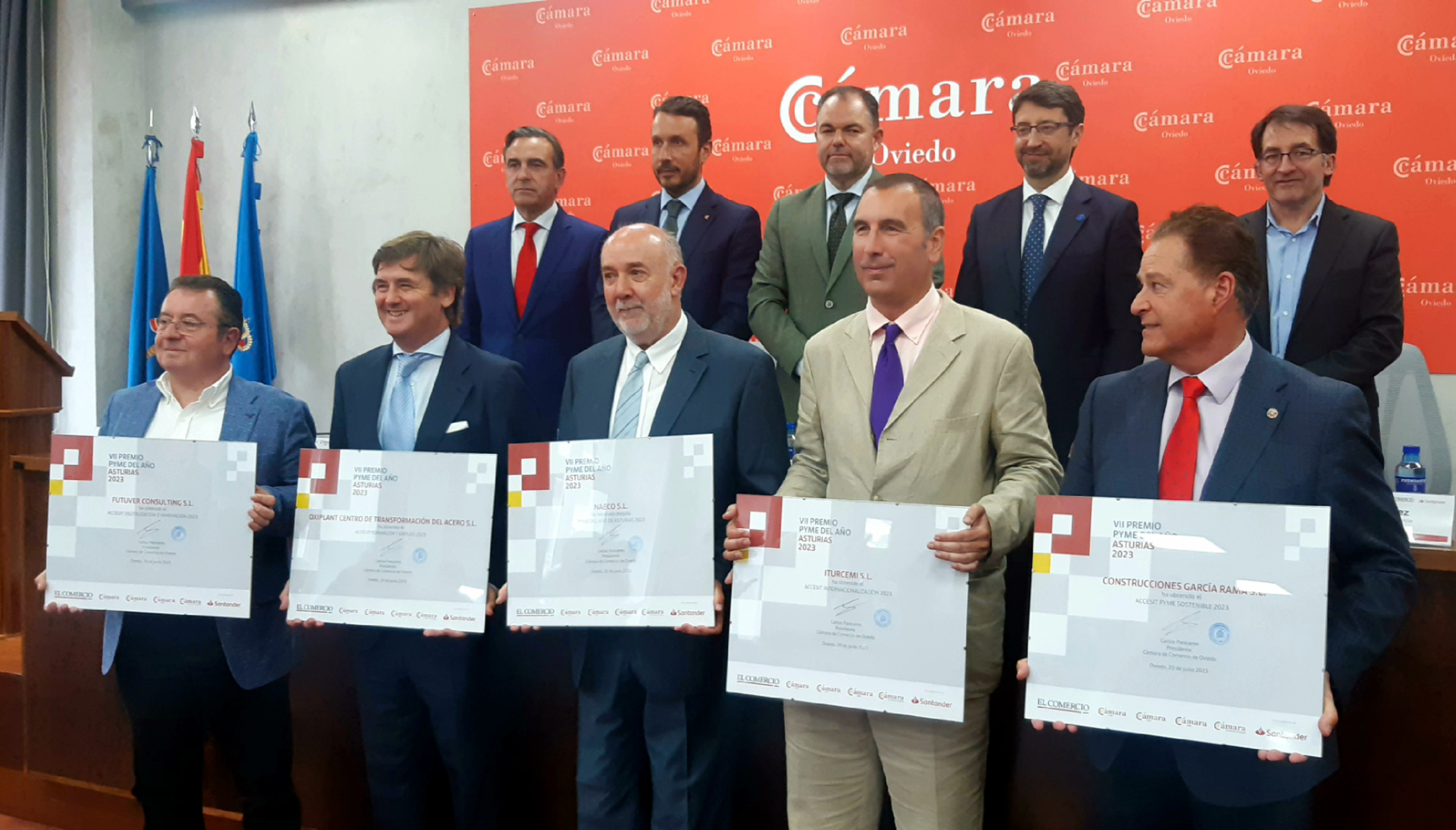 El consejero de Industria, Empleo y Promoción Económica, Enrique Fernández, ha destacado la excepcional trayectoria de las pequeñas y medianas empresas asturianas, su capacidad de innovación y la competitividad que muchas de ellas han alcanzado en los mercados globales. Lo ha señalado en la entrega del Premio Pyme del Año en Asturias, que en esta edición ha recaído en la empresa Naeco, dedicada a la fabricación de cajas, contenedores y palets de plástico reciclado y en las compañías Oxiplant, Futuver, Iturcemi y Construcciones García Rama, que han recibido el accésit en sus respectivas categorías. Los galardones están organizados por las Cámaras de Comercio y Banco Santander.