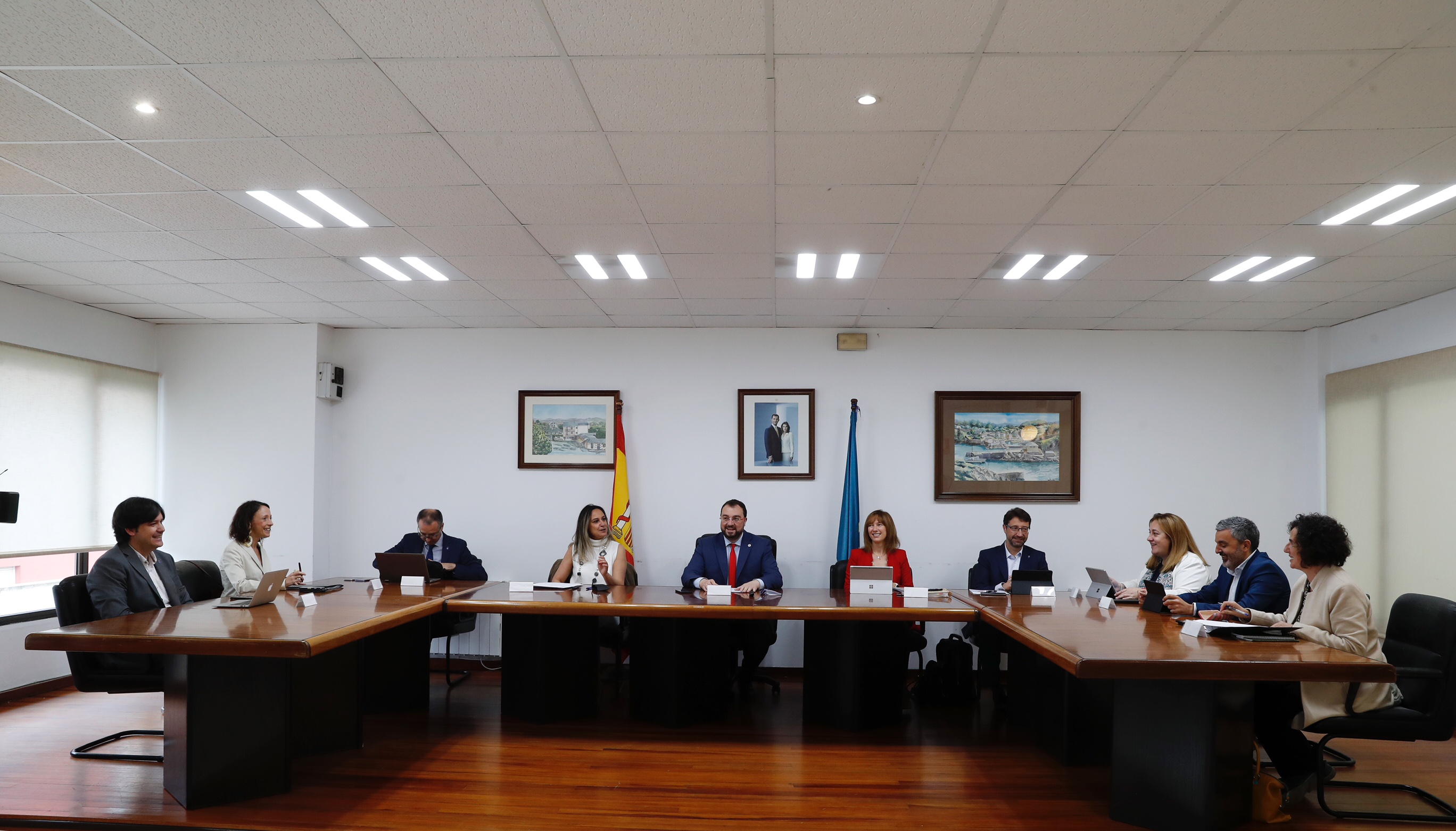El presidente del Principado de Asturias, Adrián Barbón; la alcaldesa de El Franco, Cecilia Pérez, y la consejera de Presidencia, Rita Camblor (de izqda. a dcha).
