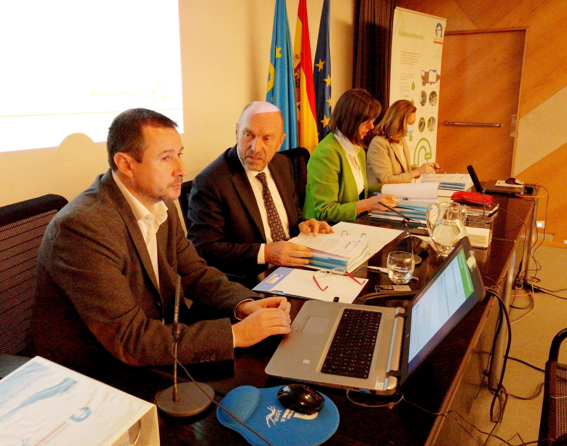 El gerente de Cadasa, Julio Pérez; el vicepresidente y consejero de Administración Autonómica, Medio Ambiente y Cambio Climático, Juan Cofiño, y la viceconsejera de Medio Ambiente y Cambio Climático, Nieves Roqueñí (de izqda. a dcha.)