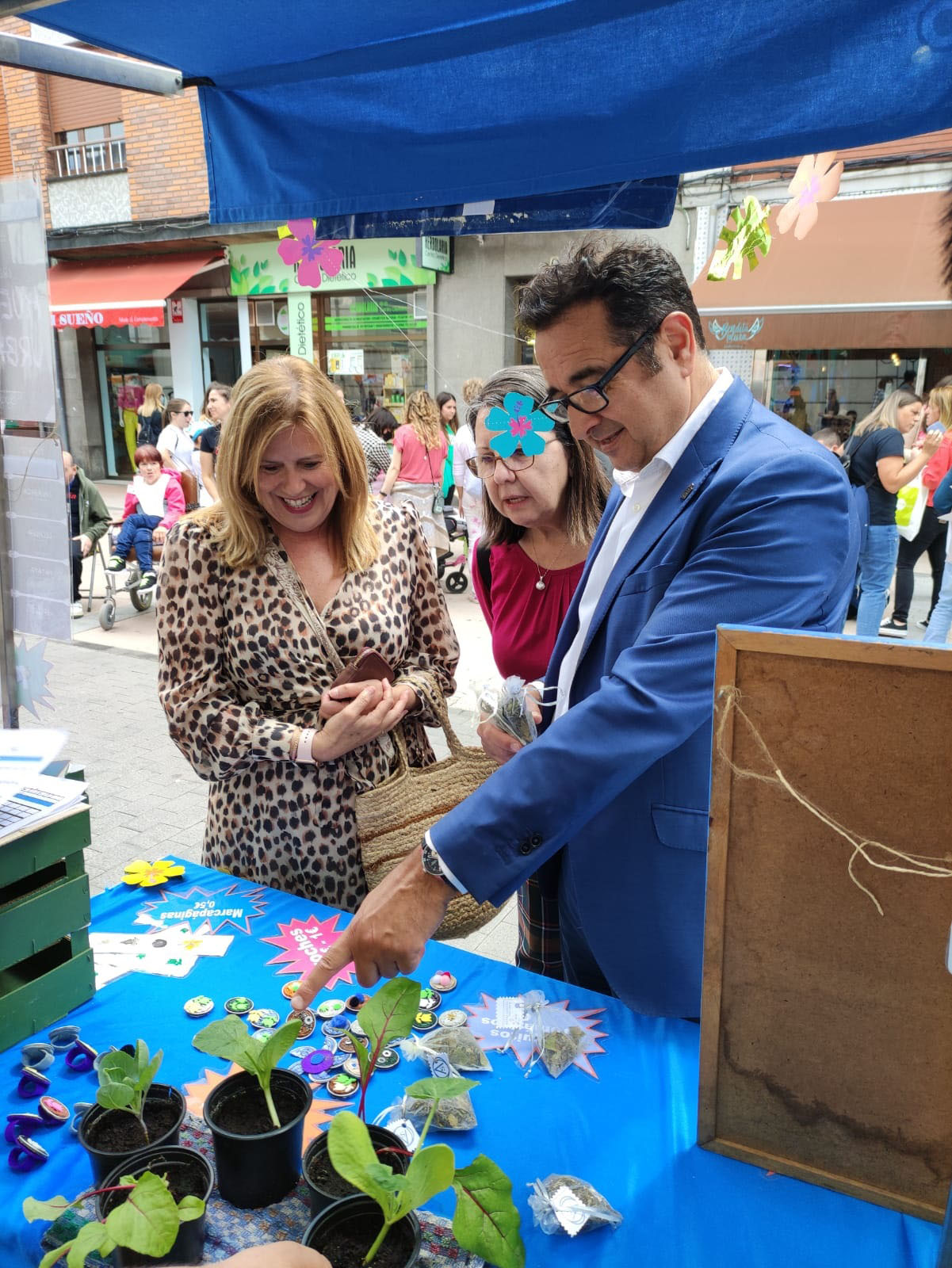 El director general de Comercio, Emprendedores y Economía Social, Julio González Zapico, ha visitado el mercado acompañado por la alcaldesa de Langreo, Carmen Arbesú; el alcalde de San Martín del Rey Aurelio, José Ángel Álvárez, y la directora gerente de Valnalón, Marta Pérez.
