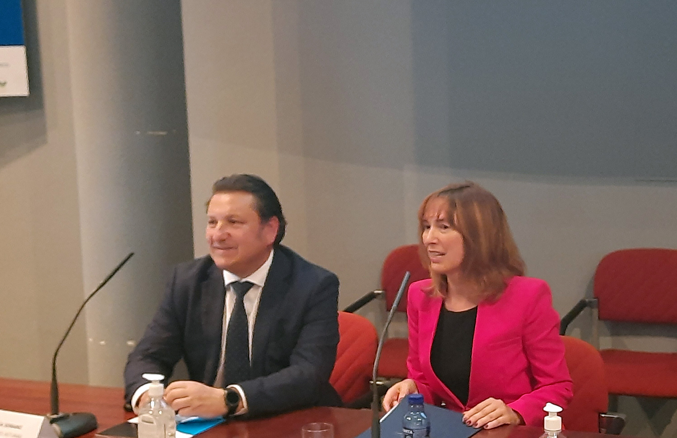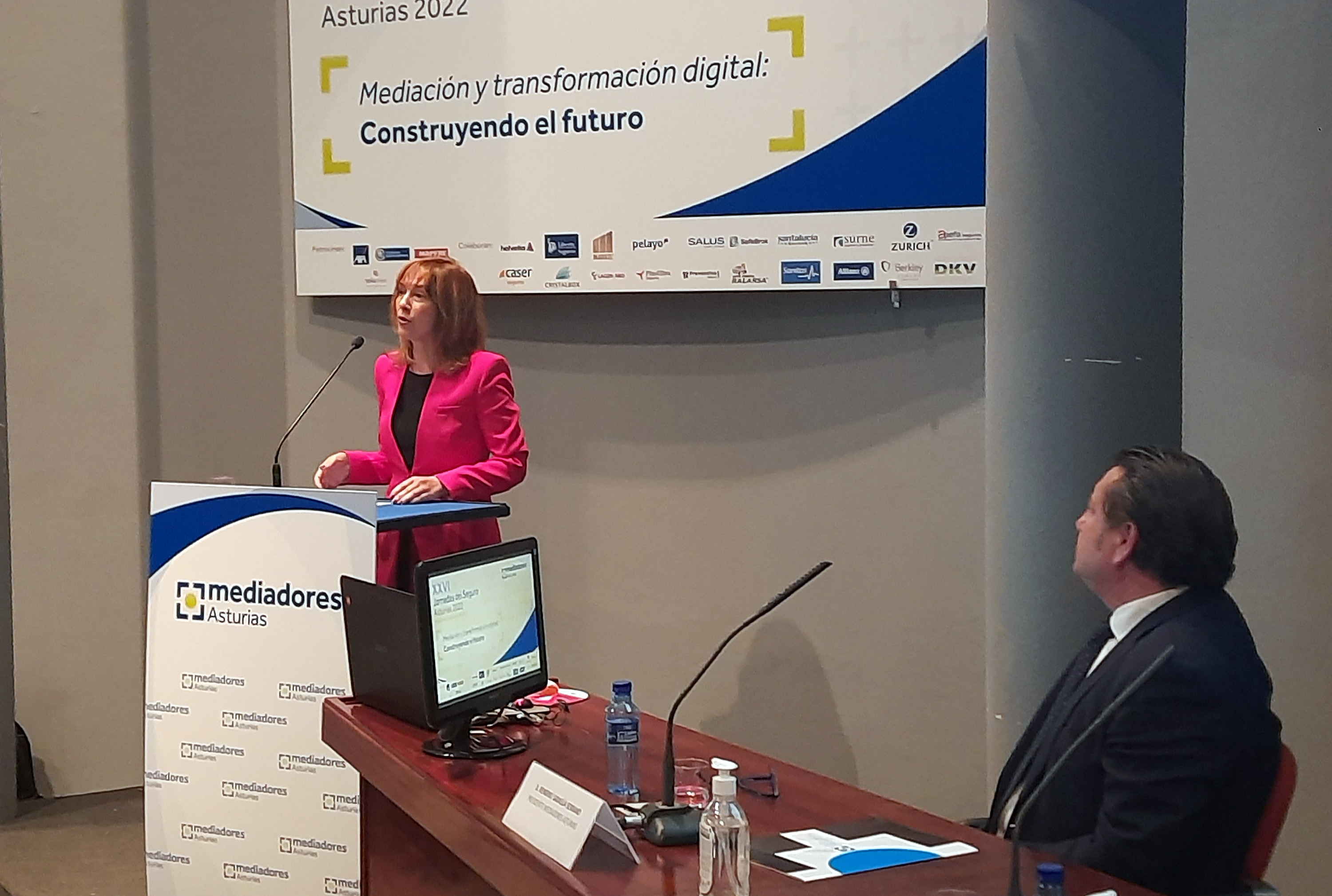 En la imagen, la consejera de Hacienda, Ana Cárcaba, y el presidente del Colegio de Mediadores de Seguros de Asturias, Reinero Sarasúa.