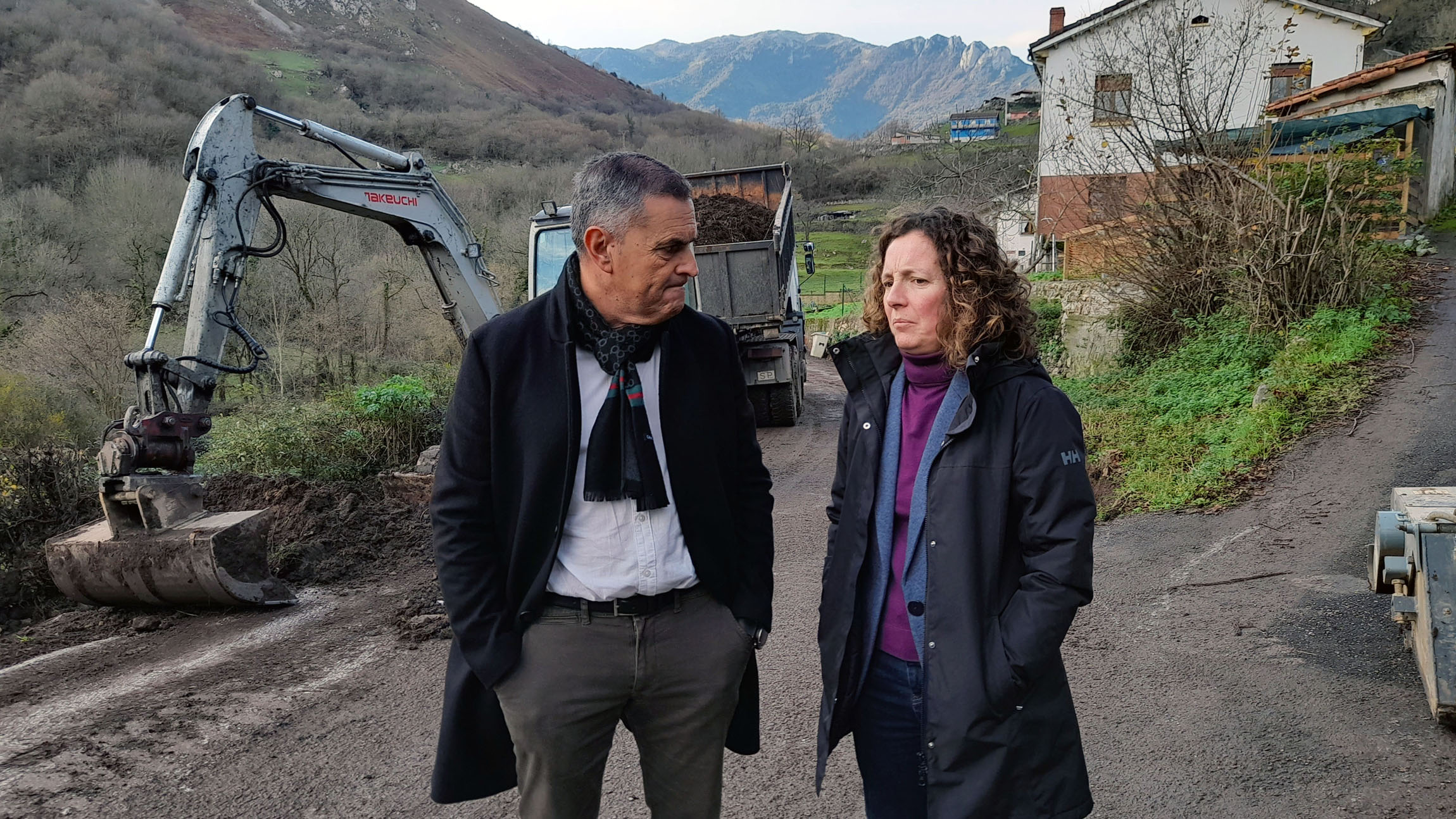 El alcalde de Morcín, Maximino García, y la directora general de Infraestructuras Viarias y Portuarias, Esther Díaz.