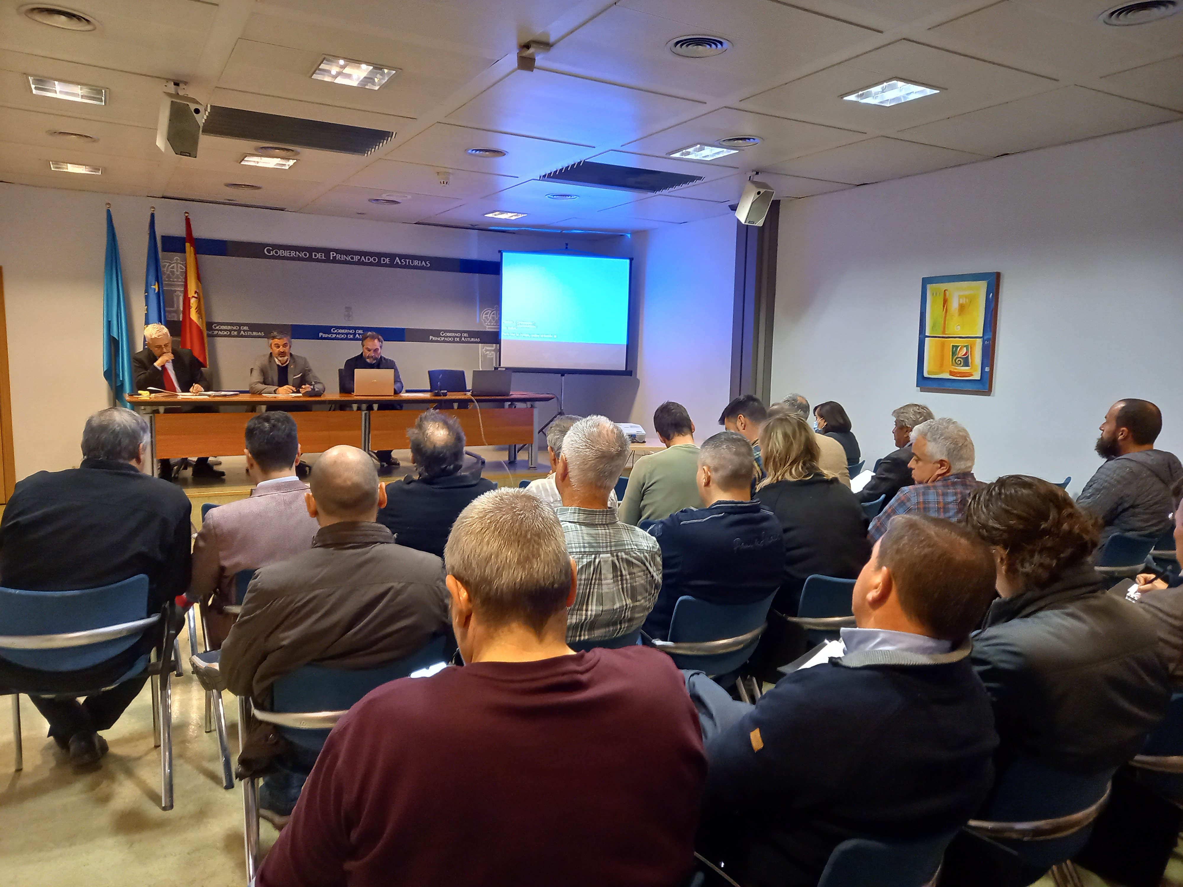 En la imagen, el secretario del consejo Forestal, Antonio González; el consejero de Medio Rural y Cohesión Territorial, Alejandro Calvo, y el director general de Infraestructuras Rurales y Montes, Fernando Prendes.
