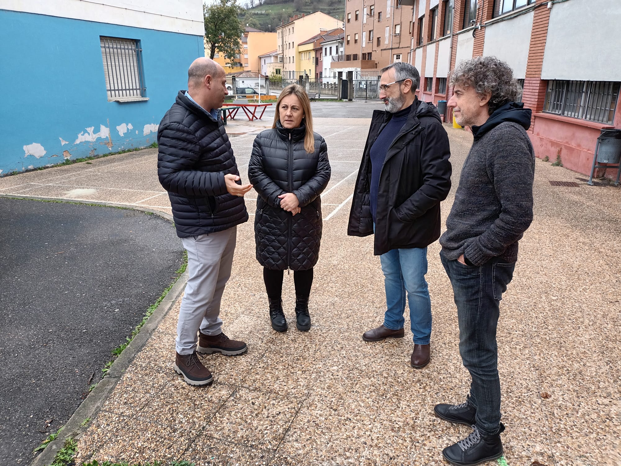 La consejera de Educación, Lydia Espina; el alcalde de Aller, Juan Carlos Iglesias; el director del CPEB Cabañaquinta, Jesús Francisco Irurtia, y el jefe de estudios, Francisco Álvarez.