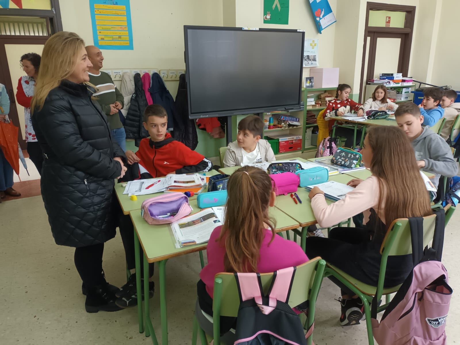 La consejera de Educación, Lydia Espina, con el alumnado de sexto de del CRA Maestro José Antonio Robles, de Caborana, en clase de Inglés.