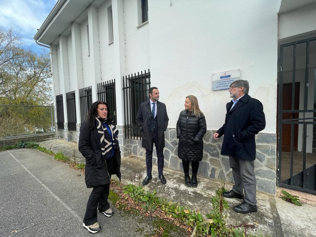 De izquierda a derecha, la concejala de Bienestar Social de Illas, Chelo Areces; el consejero de Hacienda y Fondos Europeos, Guillermo Peláez; la consejera de Educación, Lydia Espina y el alcalde de Illas, Alberto Tirador.
