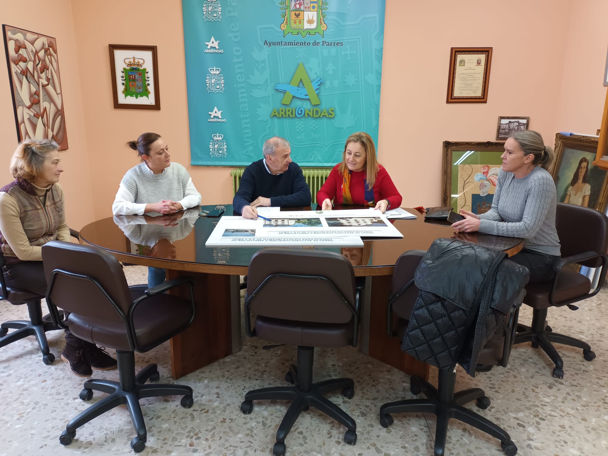 En la imagen, de izquierda a derecha, la concejala de Cultura de Parres, Rosario Huelga; la edil de Educación, Cristina Bibiana Argüelles, el alcalde de Parres, Emilio García; la consejera de Educación, Lydia Espina, y la teniente de alcaldía, Sandra González.