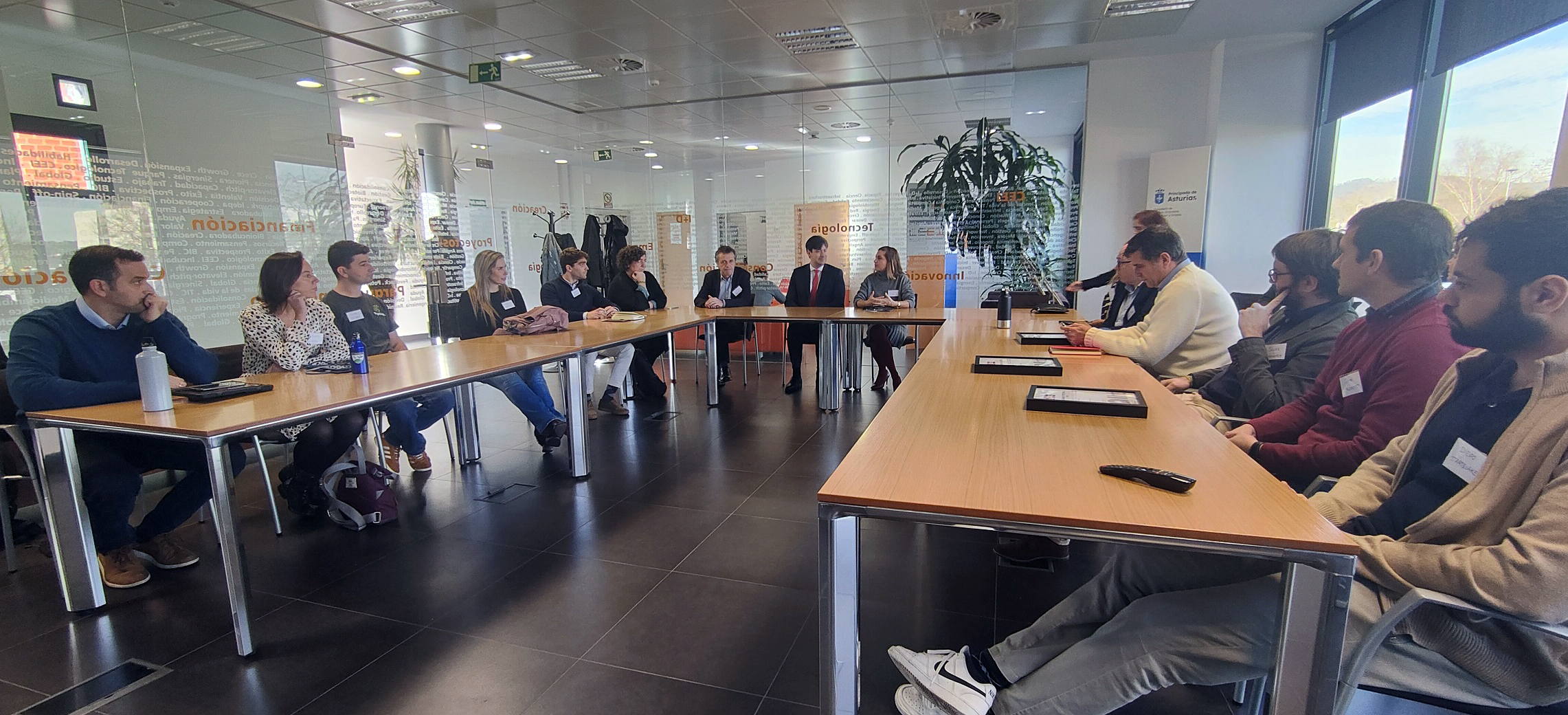 En la imagen, la directora del Centro Europeo de Empresas e Innovación (CEEI) del Principado de Asturias, Cristina Fanjul (primera por la izquierda), y el consejero de Ciencia, Empresas, Formación y Empleo, Borja Sánchez (segundo por la izquierda), junto a algunos de los responsables de las empresas de base tecnológica receptoras de ayudas.