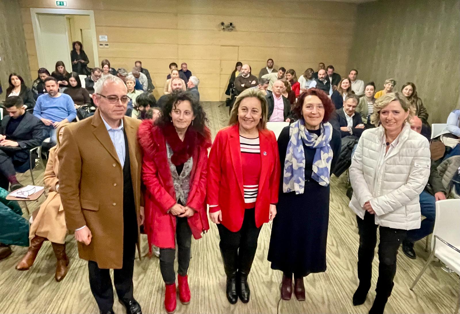En la imagen, de izquierda a derecha, el director general de Infraestructuras y Tecnologías Educativas, Julio Vallaure; la directora general de Centros, Red 0-3 y Enseñanzas Profesionales, Eva Ledo; la consejera de Educación, Lydia Espina; la presidenta de la Federación Asturiana de Concejos, Cecilia Pérez, y la secretaria técnica de Educación, Begoña Fernández.