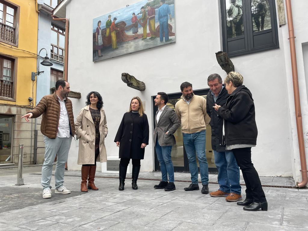 De izquierda a derecha, el alcalde de Pravia, David Álvarez; la concejala de Educación de Valdés, Clara García; la consejera de Educación, Lydia Espina; el alcalde de Cudillero, Carlos Valle; el alcalde de Valdés, Óscar Pérez; el alcalde de Boal, José Antonio Barrientos, y la alcaldesa de Villayón, Estefanía González.