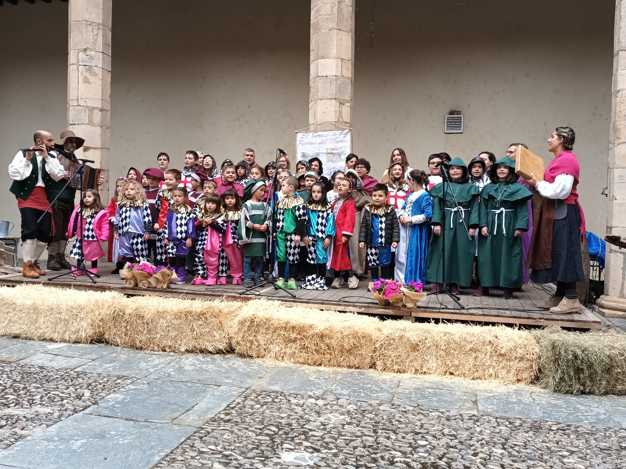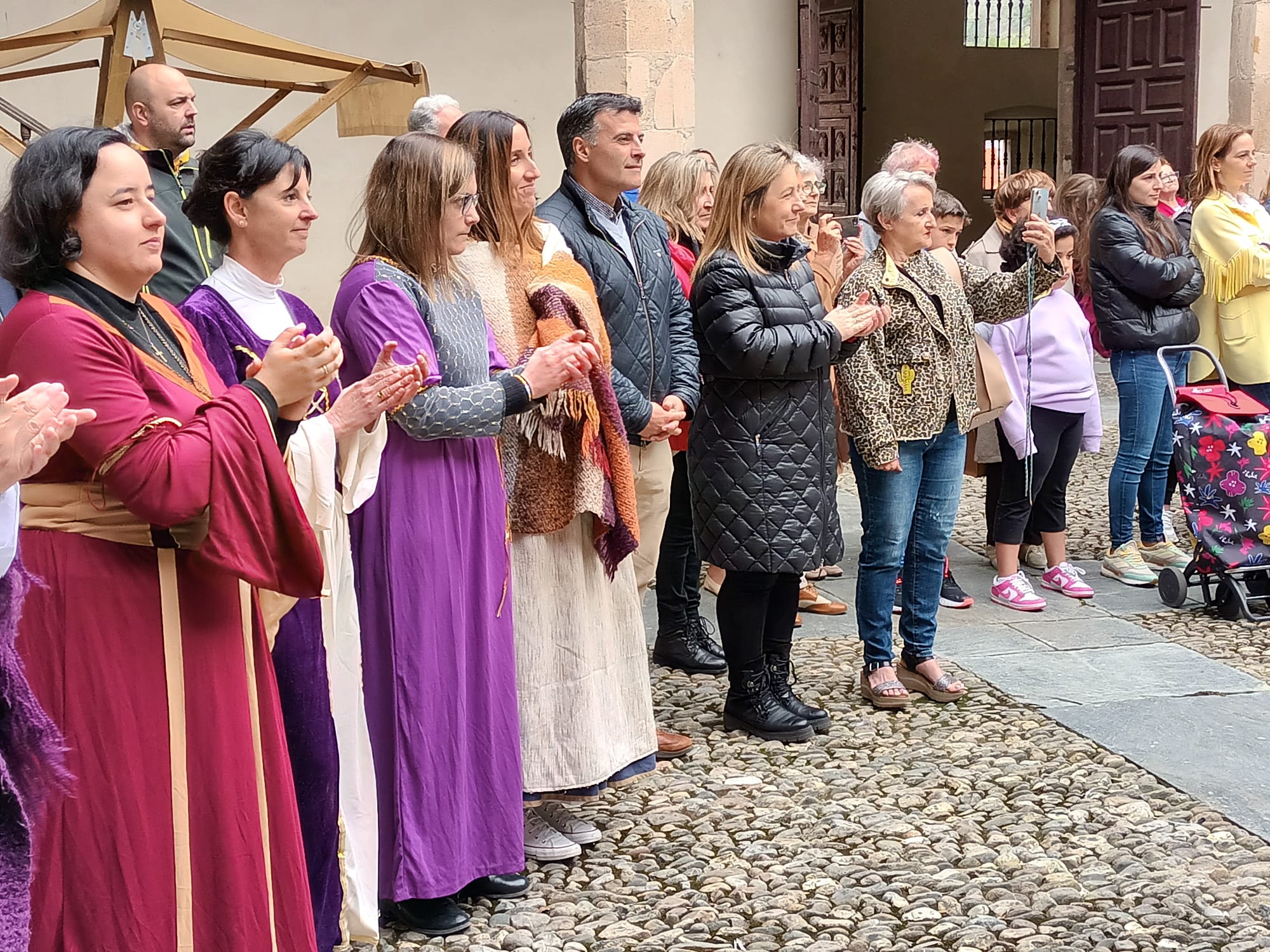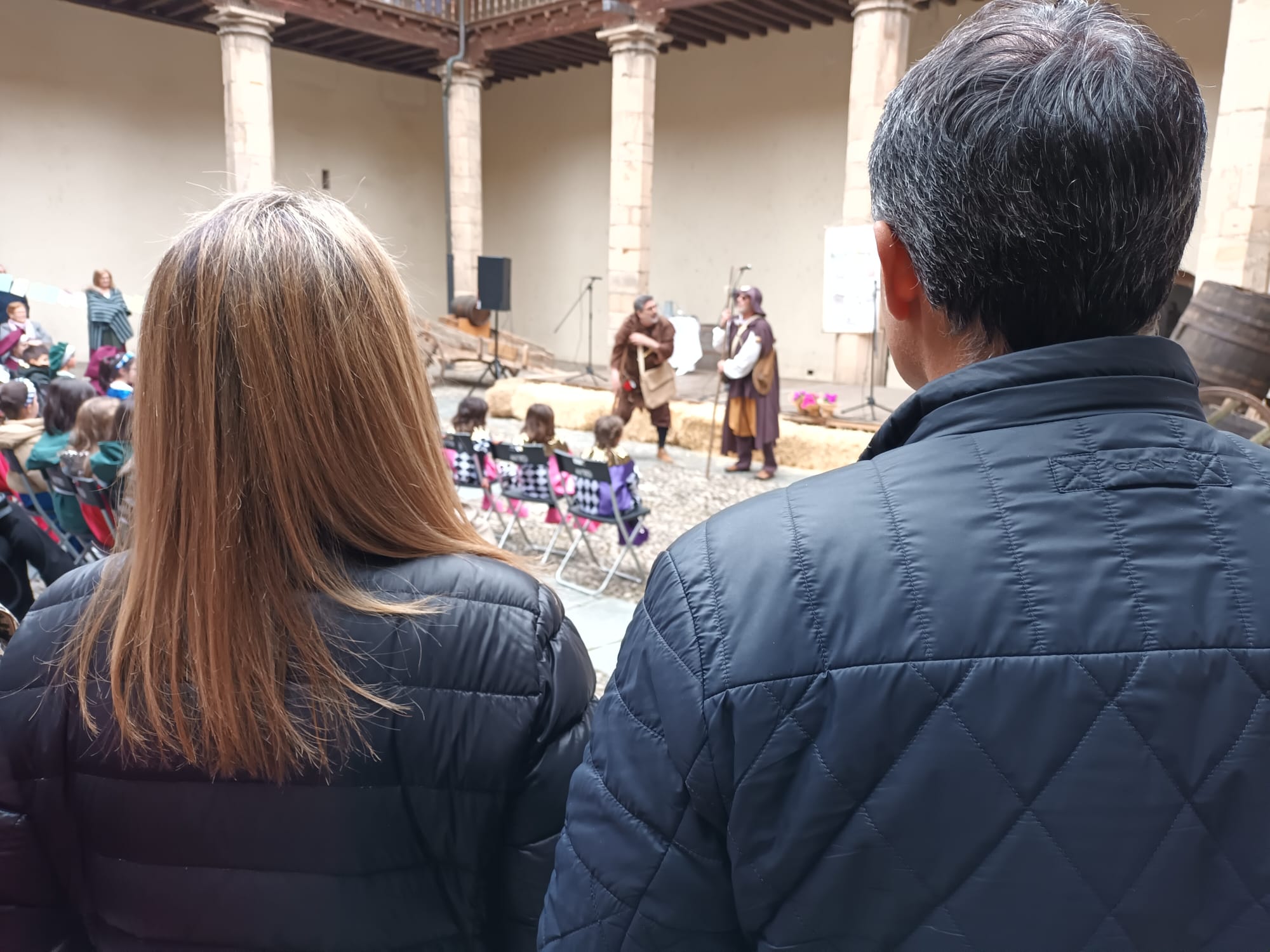 La consejera Lydia Espina presenciando la representación de romances, junto al alcalde de Cangas del Narcea, José Luis Fontaniella.