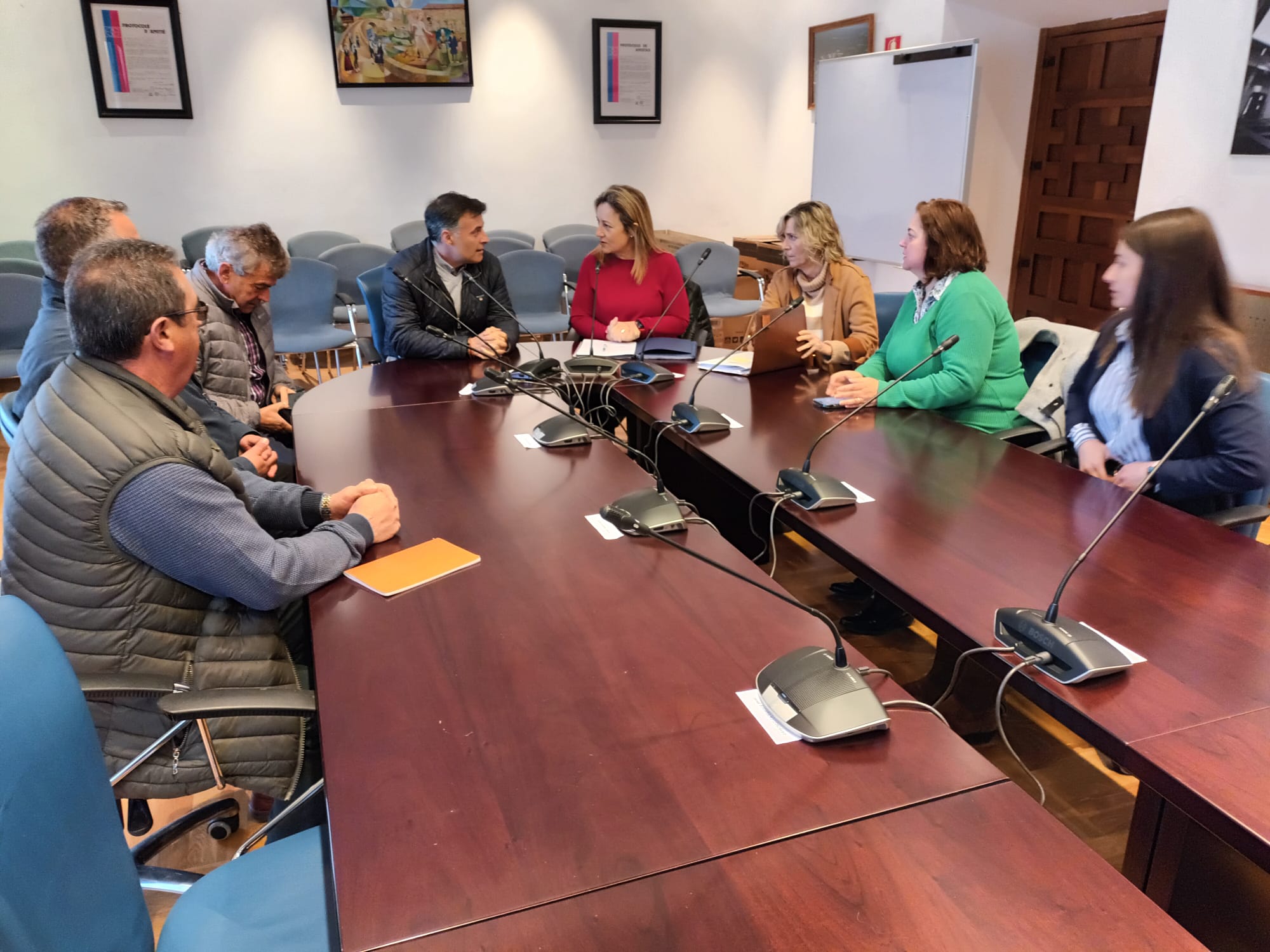 La consejera de Educación, Lydia Espina, con los representantes de los cinco concejos en el salón de plenos de Cangas del Narcea.