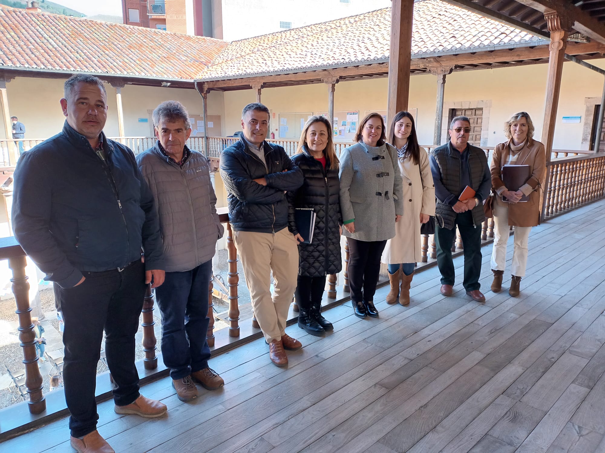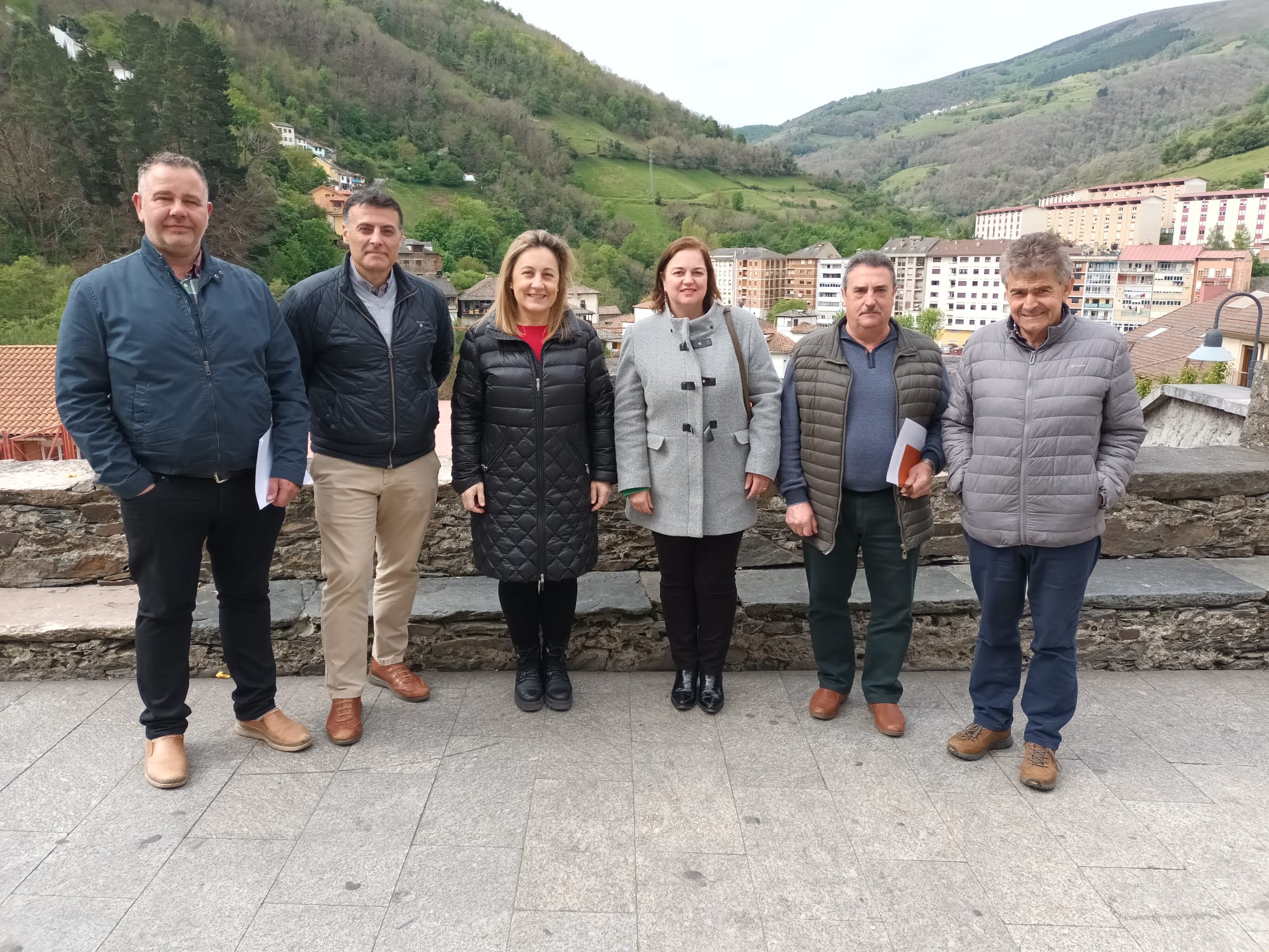 De izquierda a derecha, los alcaldes de Belmonte de Miranda, Gilberto Alonso; Somiedo, Belarmino Fernández, y Cangas del Narcea, José Luis Fontaniella; la consejera de Educación, Lydia Espina; la alcaldesa de Tineo, Montserrat Fernández; la concejala de Educación tinetense, Jimena Fernández; el teniente de alcaldía de Degaña, Luciano Villanueva, y la secretaria técnica de la consejería, Begoña Fernández.
