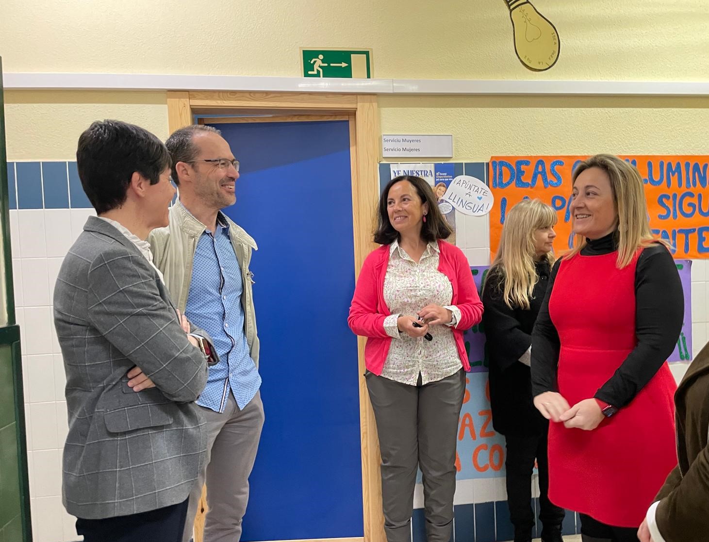 De izquierda a derecha, la inspectora Paula Fernández; el jefe de sección de Evaluación Educativa, César Gallego; la directora del CP Xove, Covadonga Boga, y la consejera de Educación, Lydia Espina, durante la visita al centro con motivo del inicio de las pruebas de evaluación de diagnóstico.