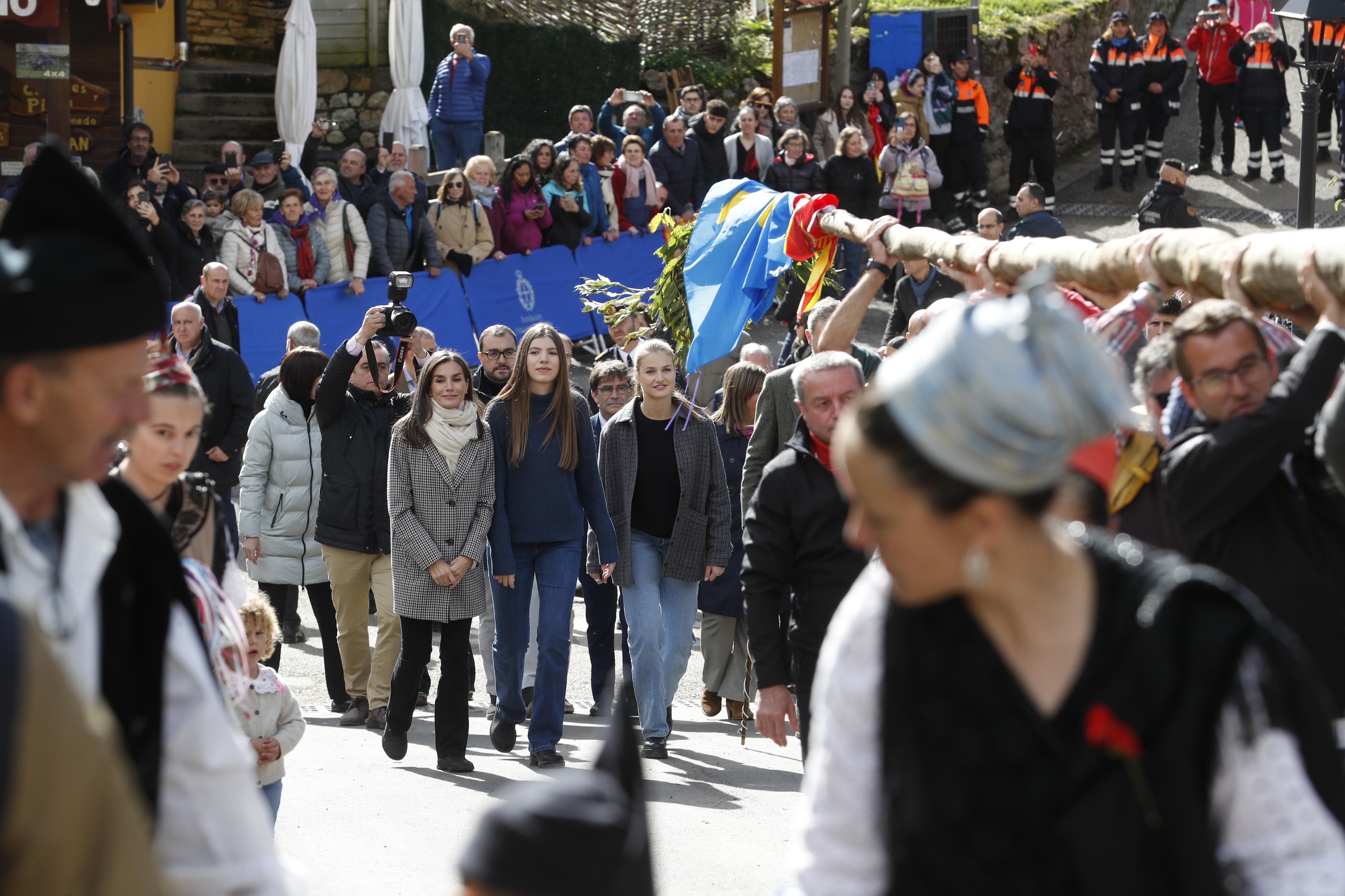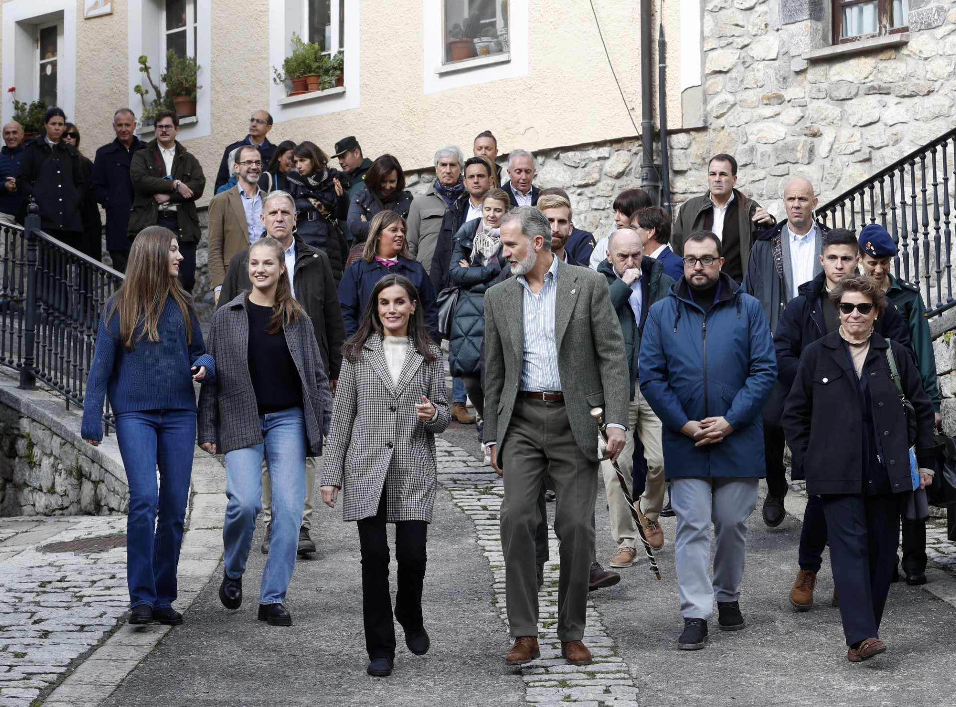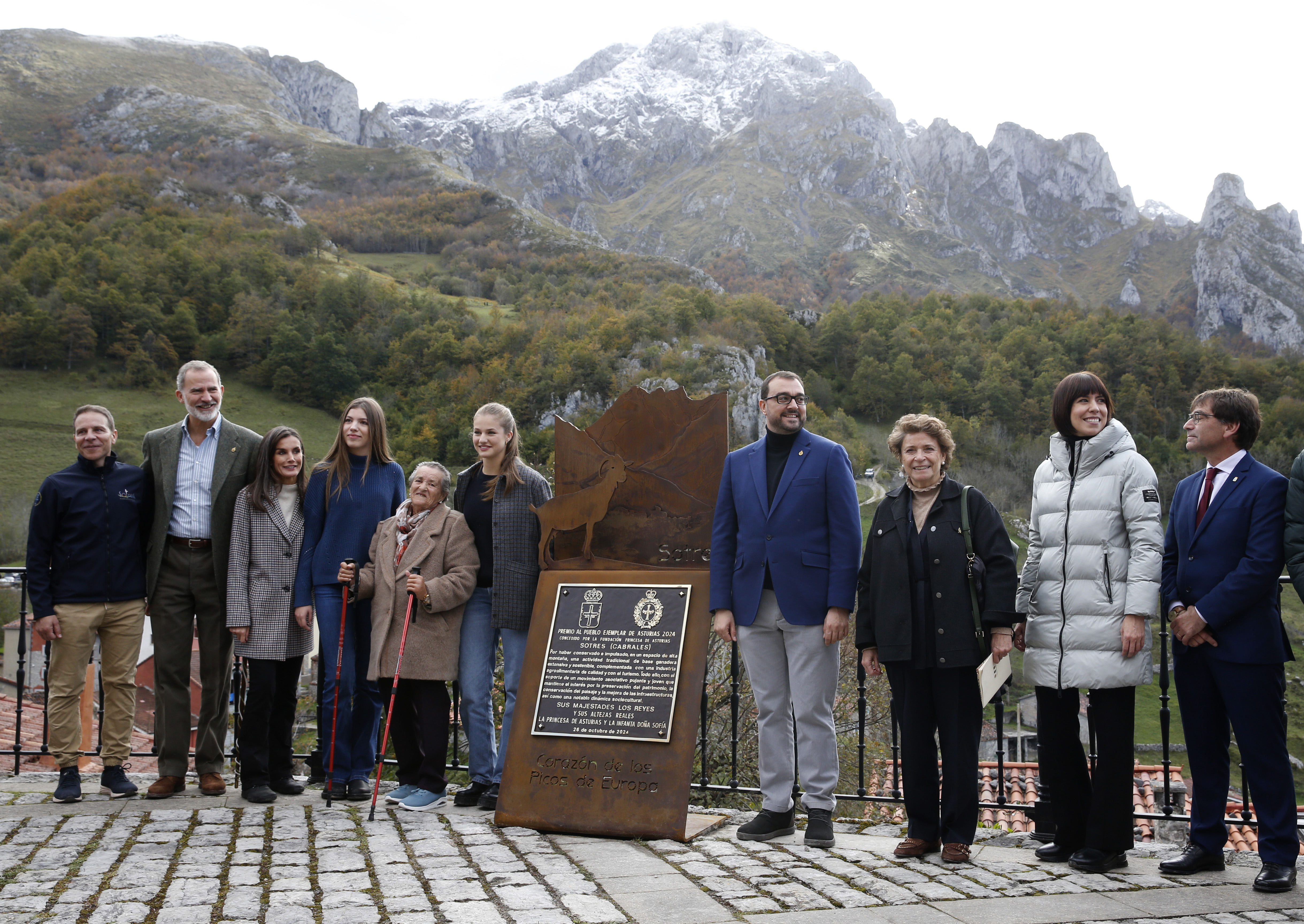 Por la izquierda, la reina Letizia; la infanta Sofía; el presidente del Principado, Adrián Barbón; la princesa Leonor de Borbón; y el rey Felipe VI.