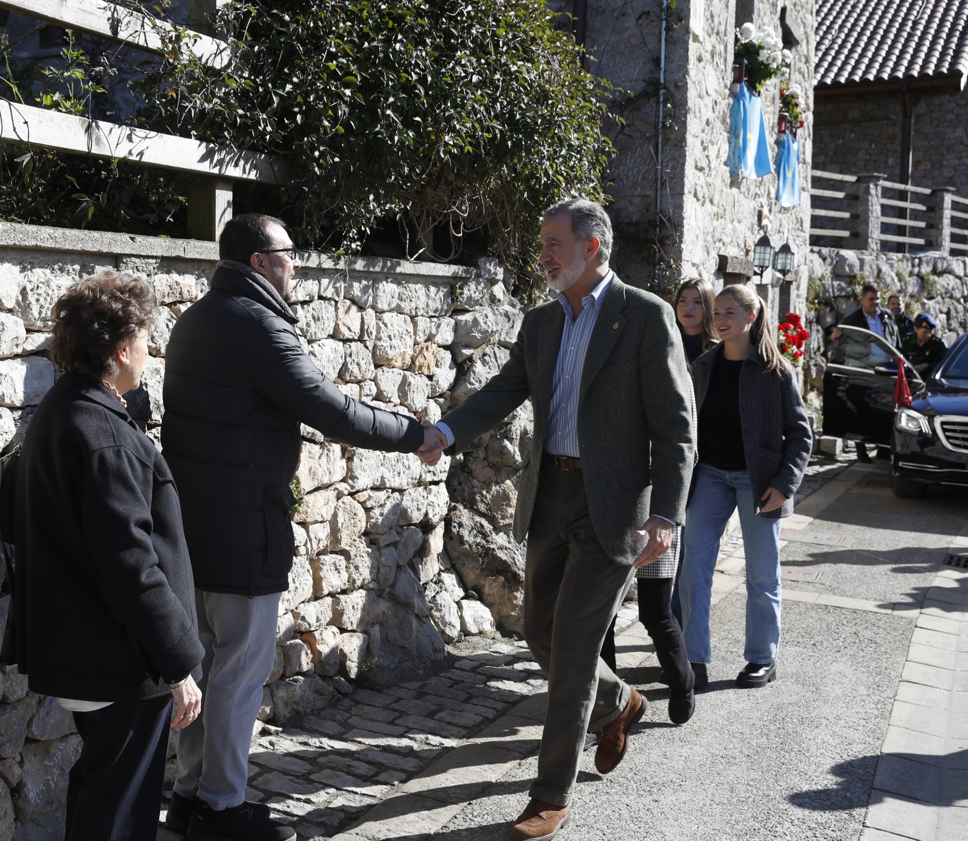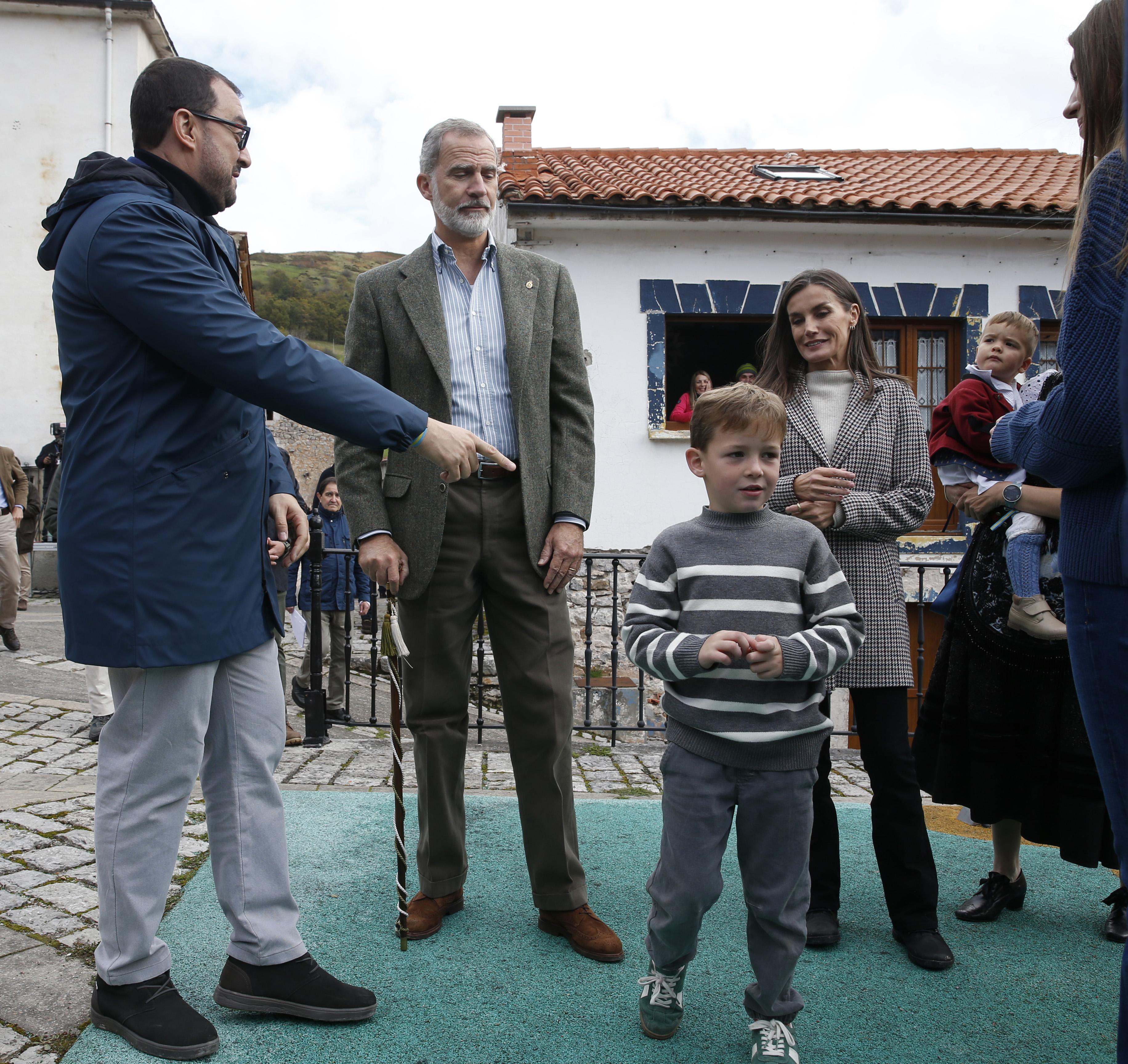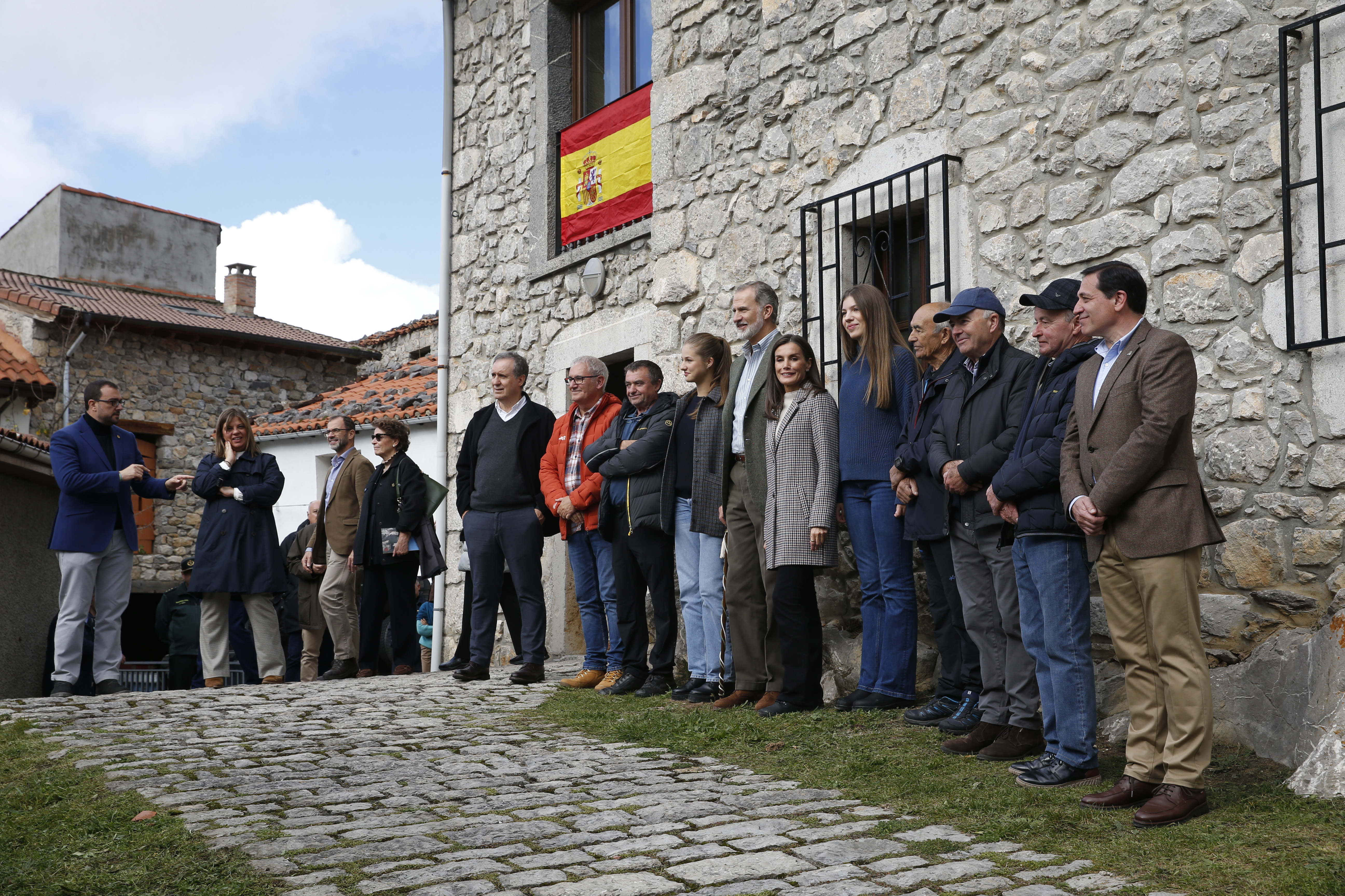 Por la izquierda, la reina Letizia; la infanta Sofía; el presidente del Principado, Adrián Barbón; la princesa Leonor de Borbón; y el rey Felipe VI.