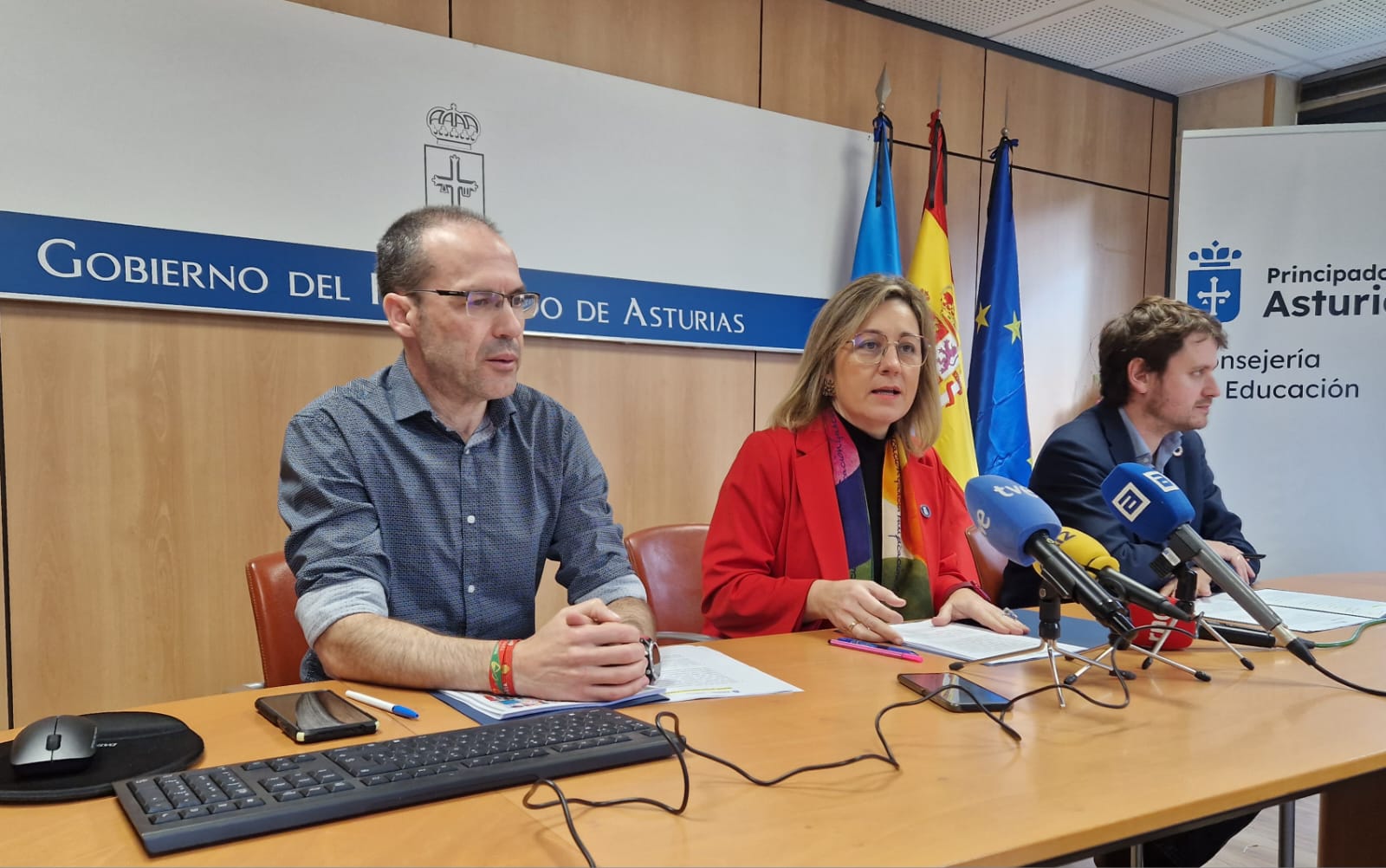 De izquierda a derecha, el jefe de sección de Evaluación Educativa, César Gallego; la consejera de Educación, Lydia Espina, y el director general de Inclusión Educativa y Ordenación, David Artime.