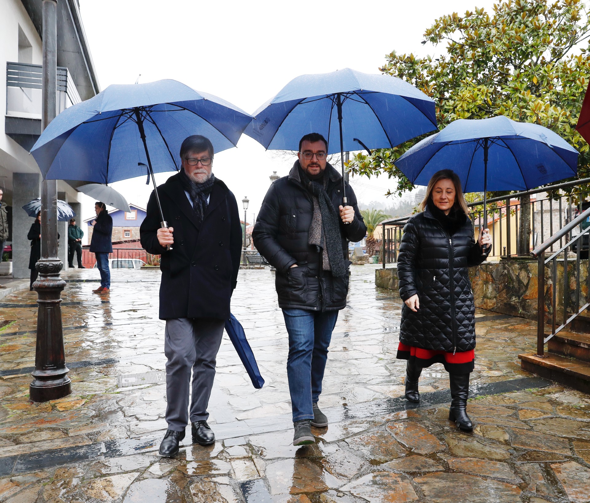 En la imagen, de izquierda a derecha, el alcalde de Illas, Alberto Tirador; el presidente del Principado, Adrián Barbón, y la consejera de Educación, Lydia Espina.