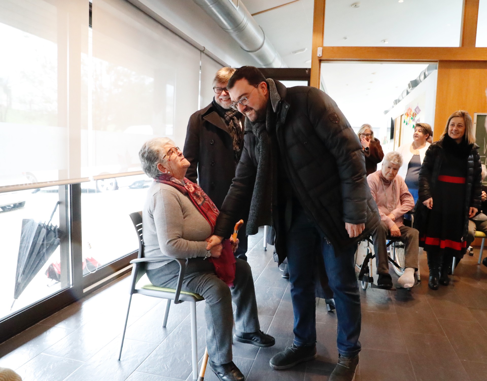 En la imagen, el presidente saluda a una de las usuarias del centro rural de apoyo diurno de Illas.
