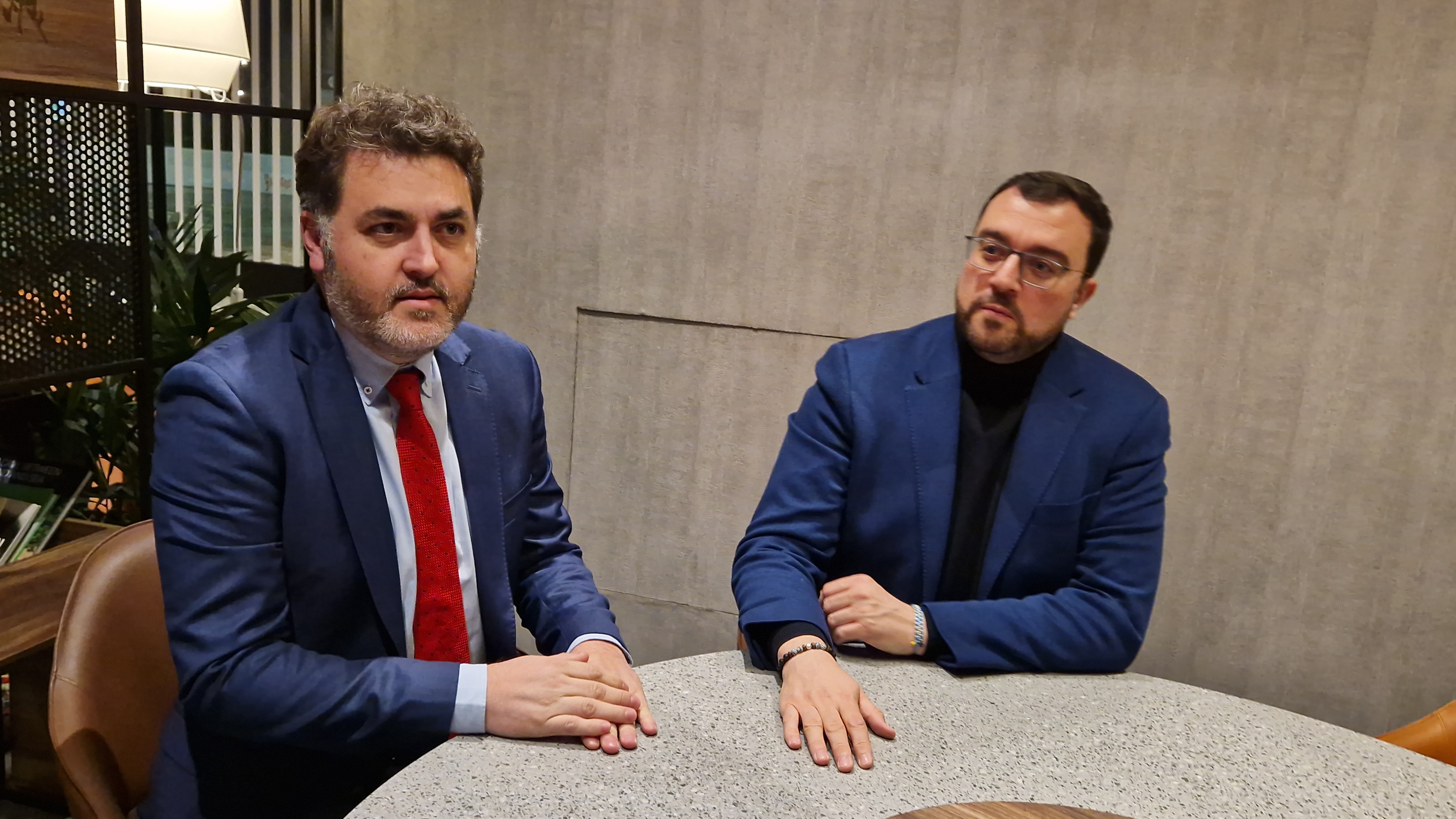 En la imagen, el presidente del Principado, Adrián Barbón (a la derecha), junto al eurodiputado asturiano, Jonás Fernández.