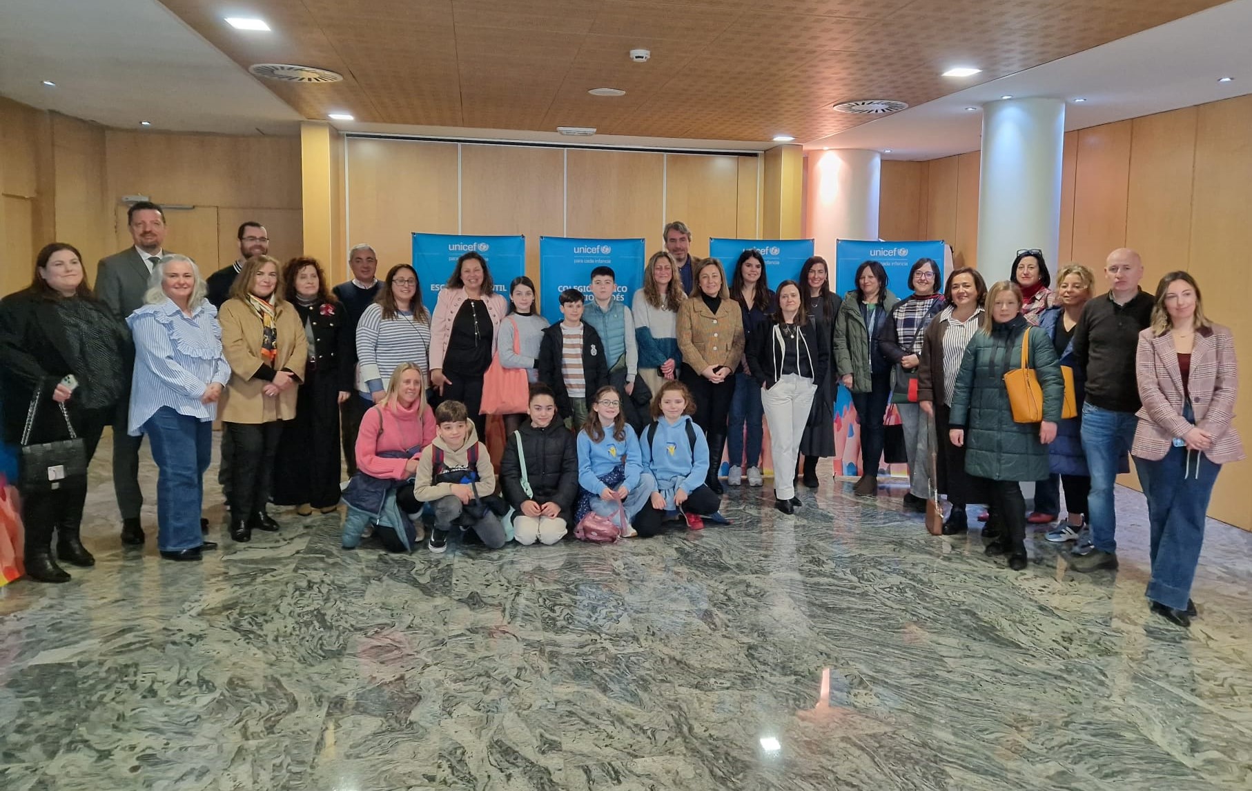 La consejera de Educación, Lydia Espina, con los representantes de los centros educativos distinguidos por Unicef.
