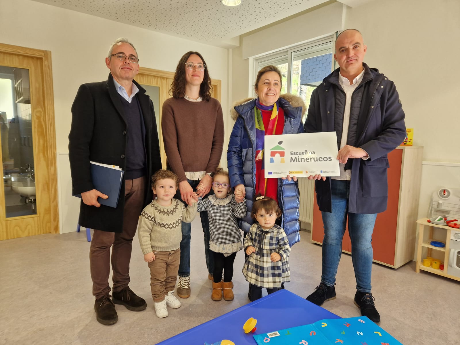 Noticia para la web. Inauguración escuelina Degaña SUSANA DIAZ MACHARGO Prensa Principado MARIA LUISA MEANA BUSTO Hola. De izquierda a derecha, el director general de Infraestructuras y Tecnologías Educativas, Julio Vallaure; la directora de la escuelina 'Los Minerucos', Leticia Álvarez; la consejera de Educación, Ludia Espina; y el alcalde de Degaña, Óscar Ancares, con la placa del centro y los primeros alumnos y alumnas del centro.