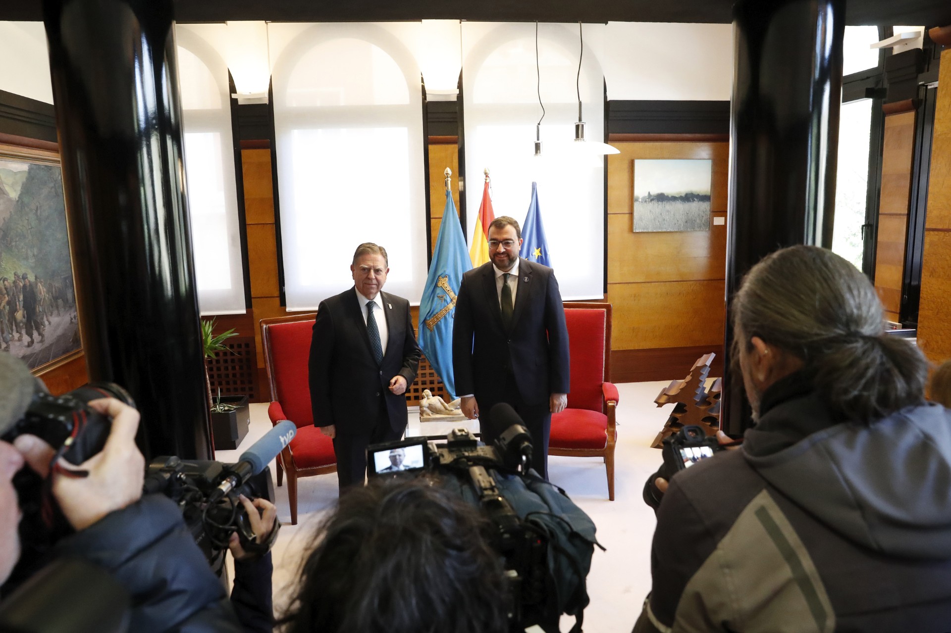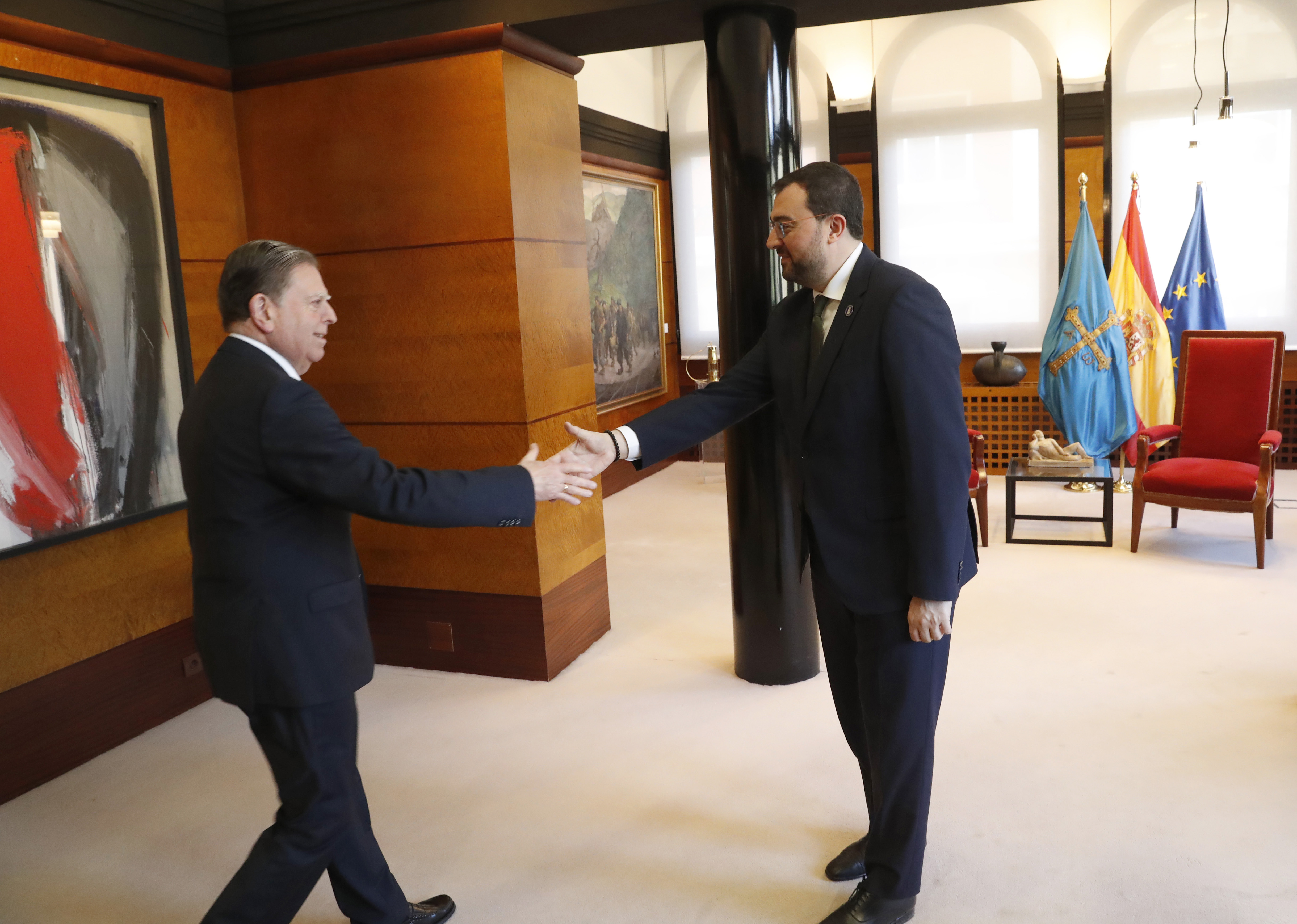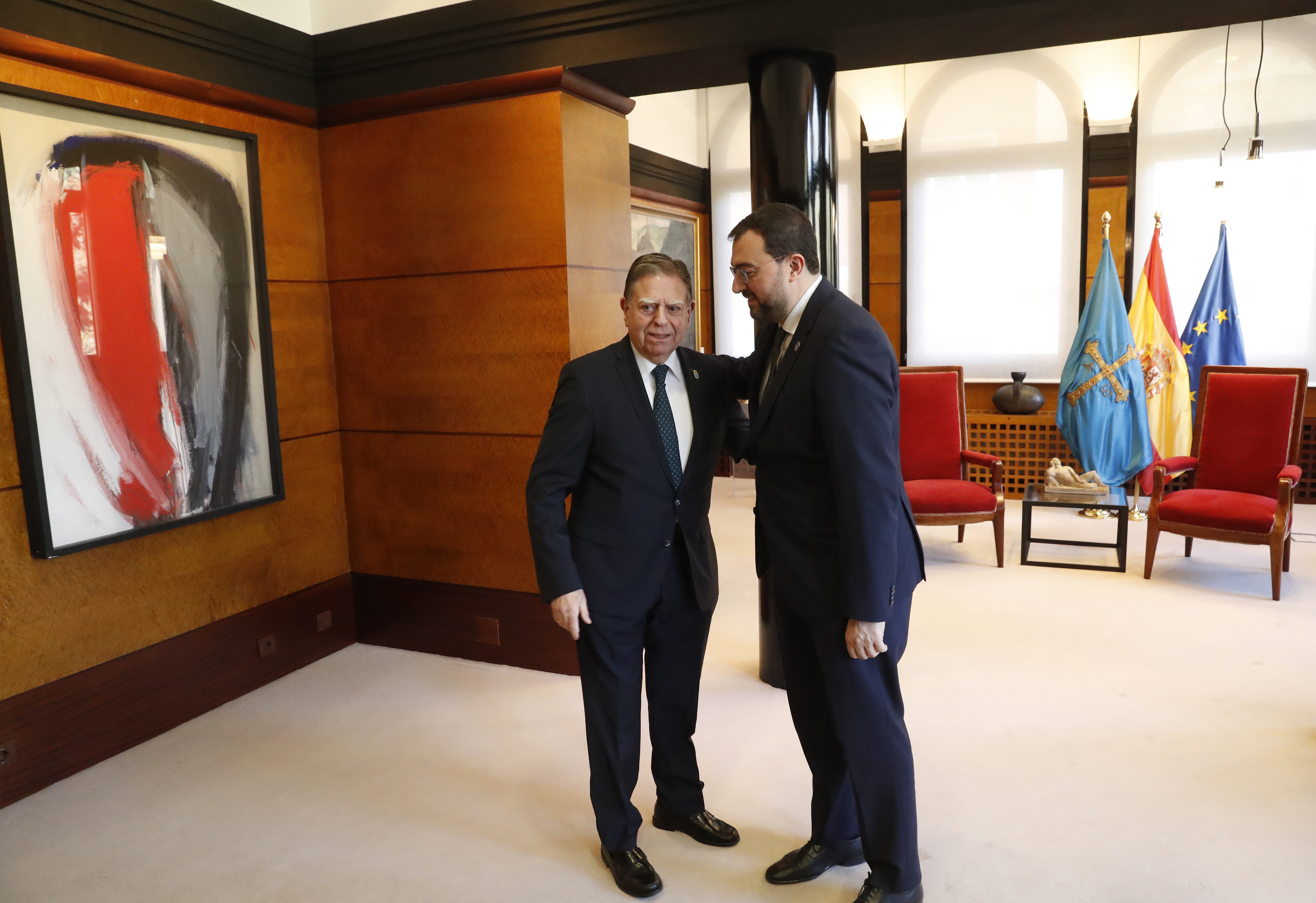 El alcalde de Oviedo, Alfredo Canteli, y el presidente del Principado, Adrián Barbón, durante su reunión.
