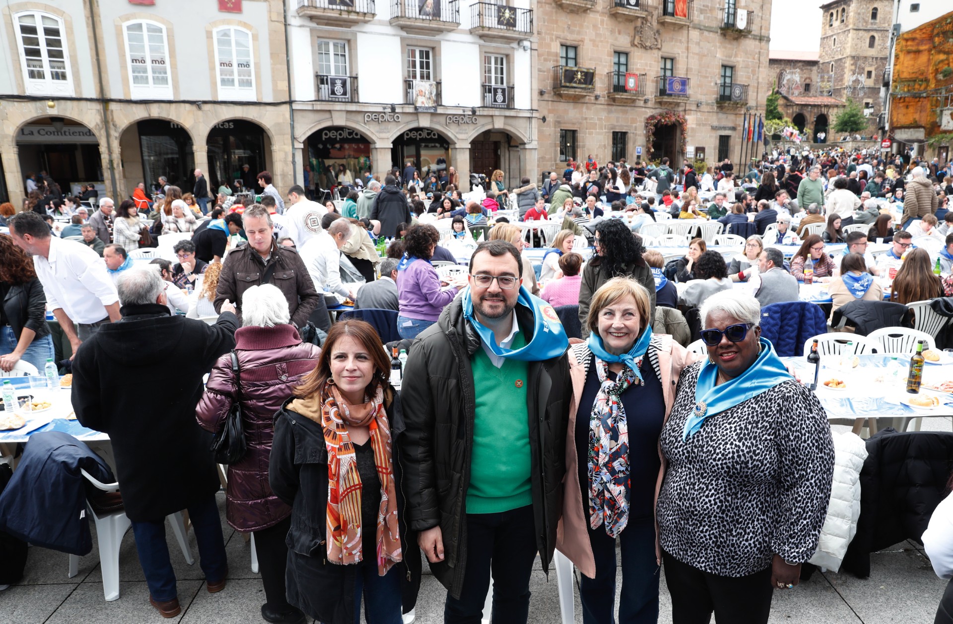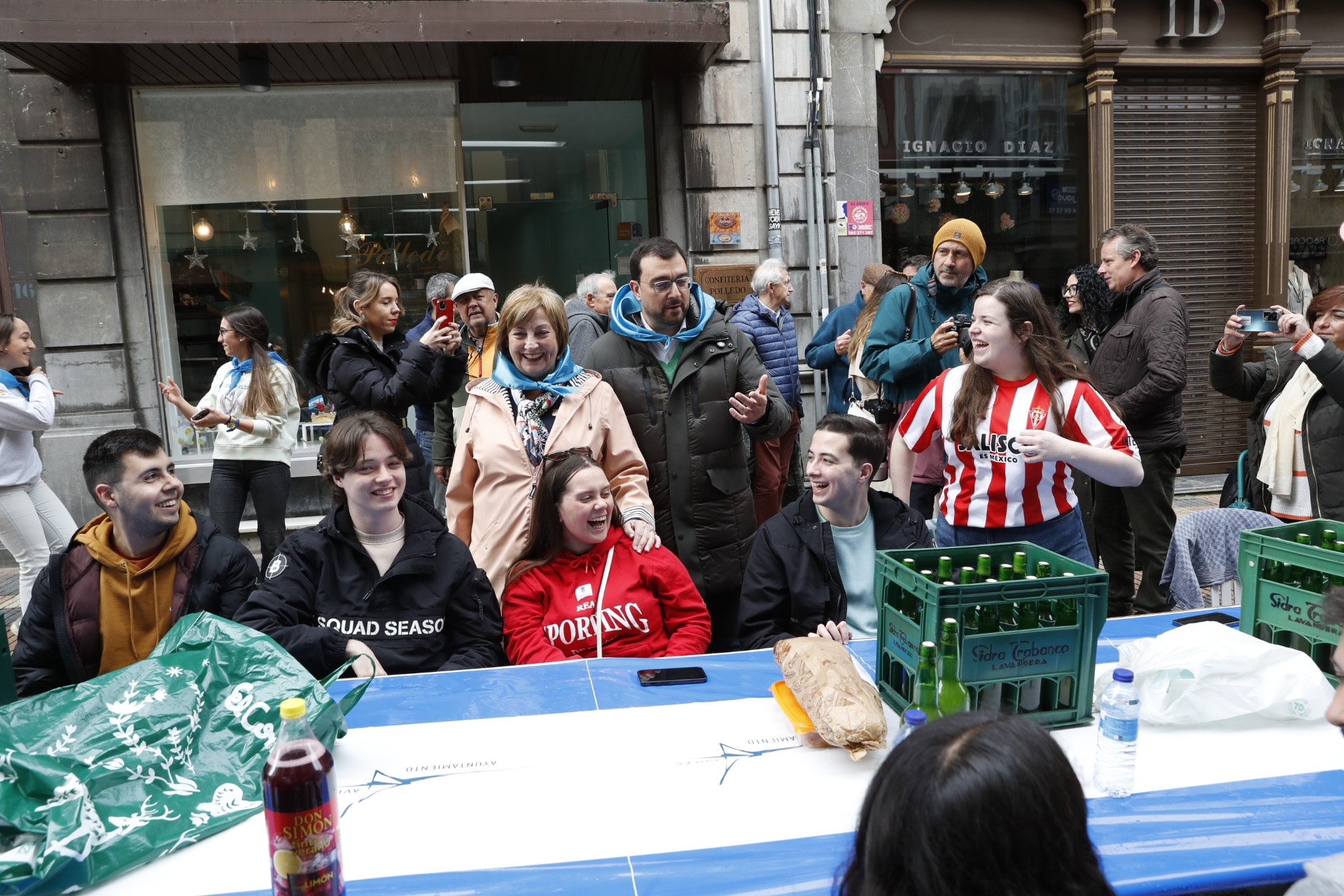 El presidente del Principado de Asturias, Adrián Barbón, ha participado hoy en la Comida en la Calle que se celebra con motivo de las Fiestas del Bollo 2025 de Avilés.