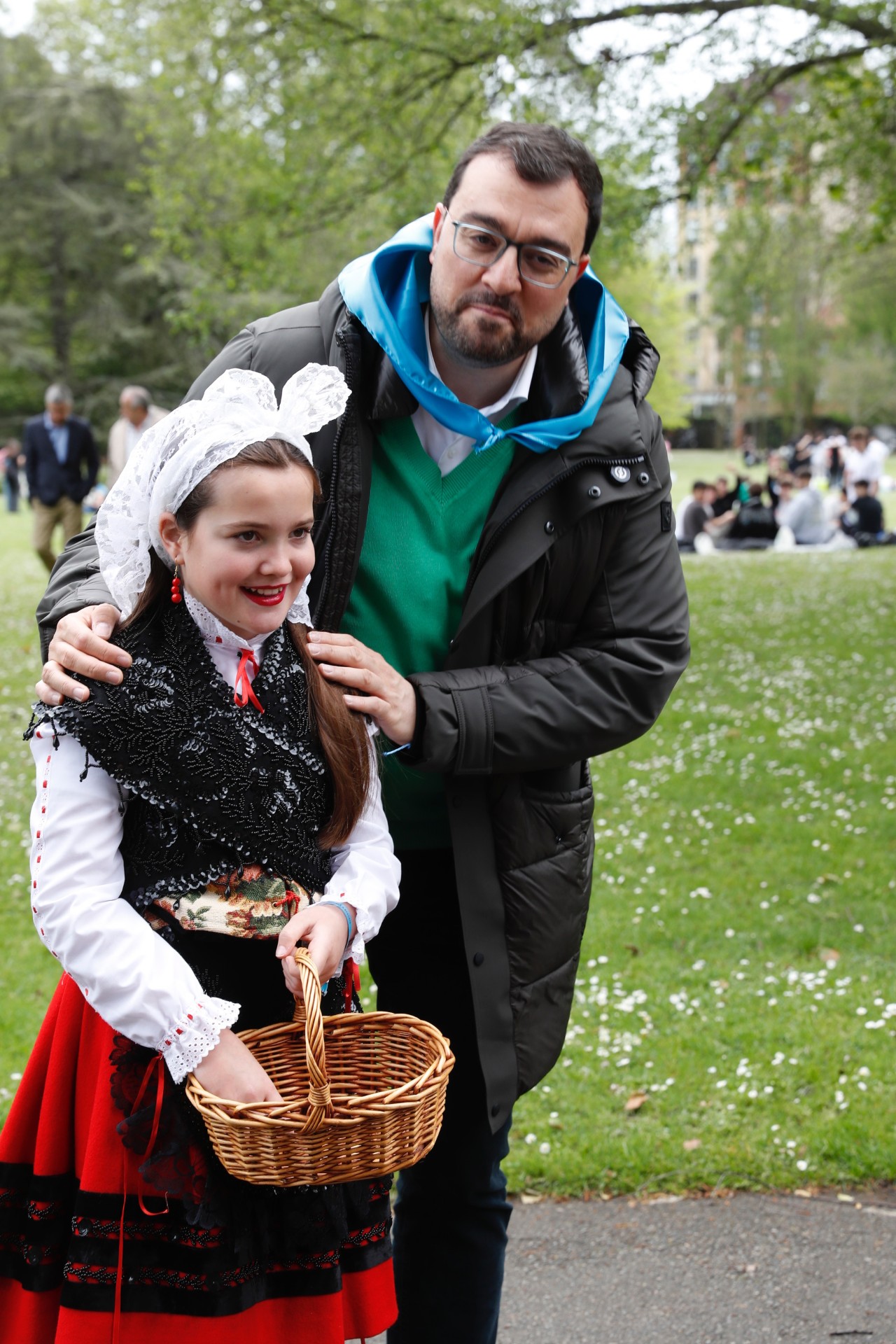En la imagen, el presidente con la alcaldesa de Avilés, Mariví Monteserín, saludan a varios participantes en la fiesta, a la que han asistido también el consejero de Medio Rural y Política Agraria, Marcelino Marcos, y la consejera de Cultura, Política Llingüística y Deporte, Vanessa Gutiérrez.