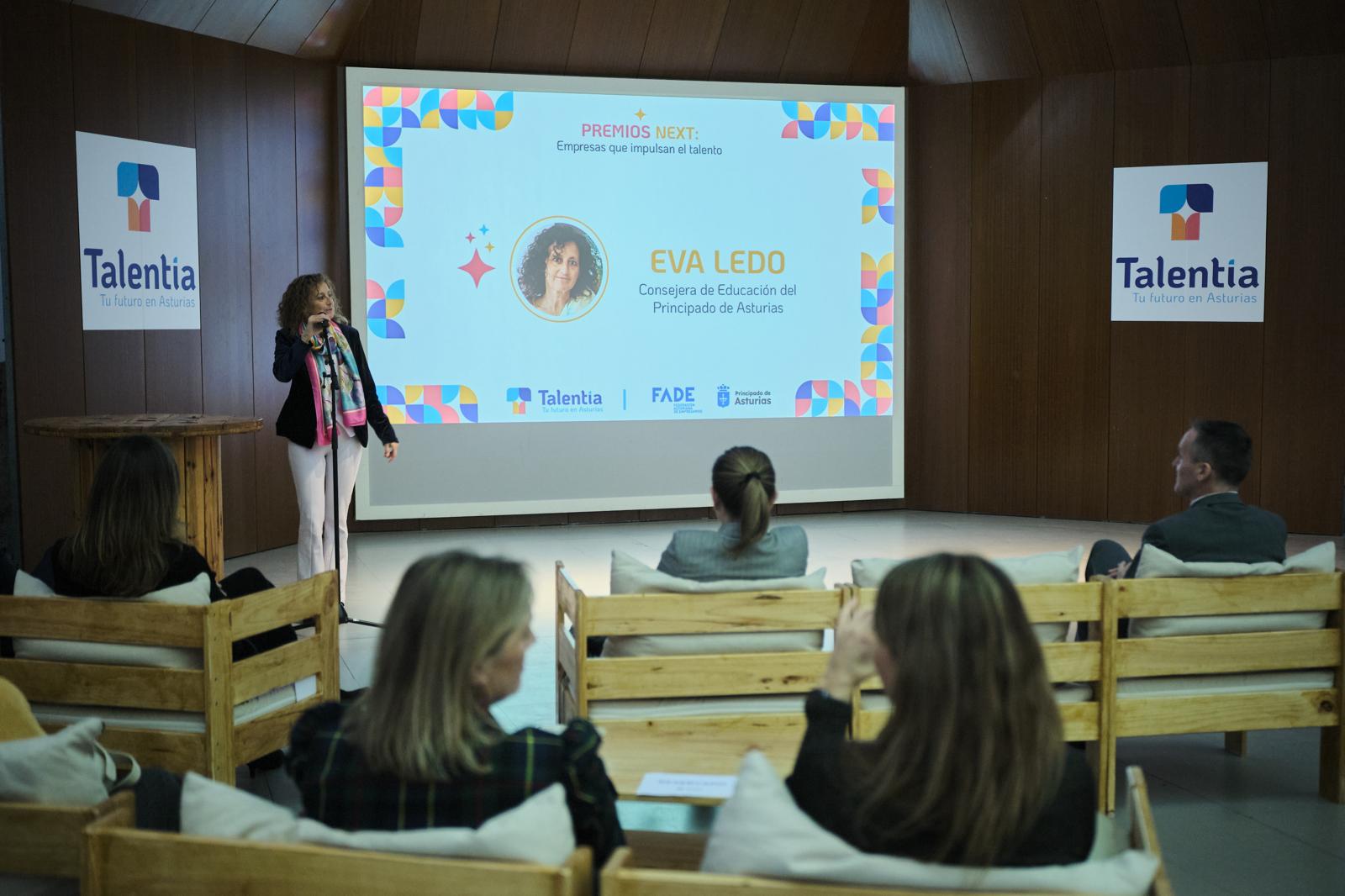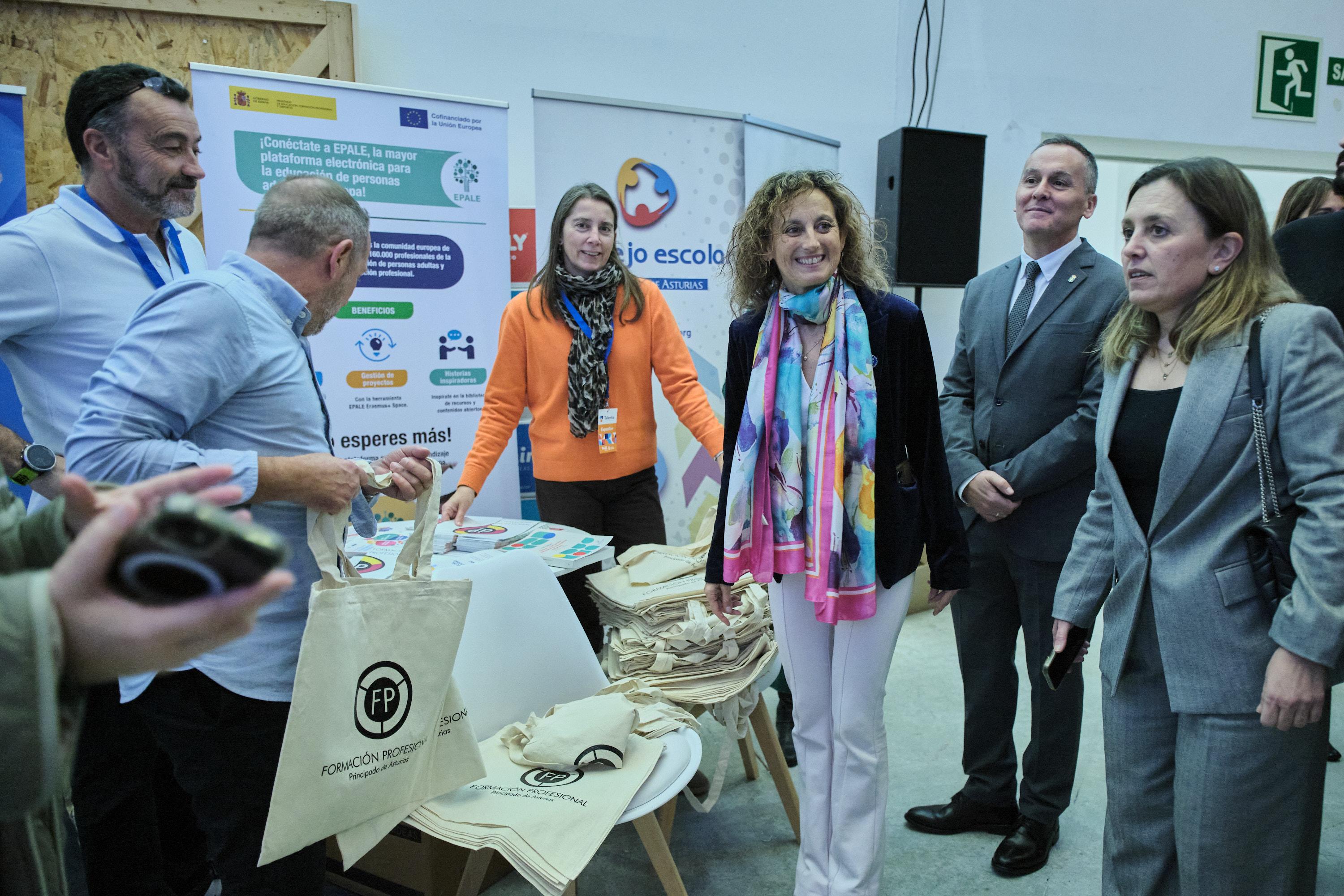 En la imagen, la consejera de Educación, Eva Ledo (a la izquierda), junto a la presidenta de la Federación Asturiana de Empresarios (Fade), María Calvo, en la feria Talentia.