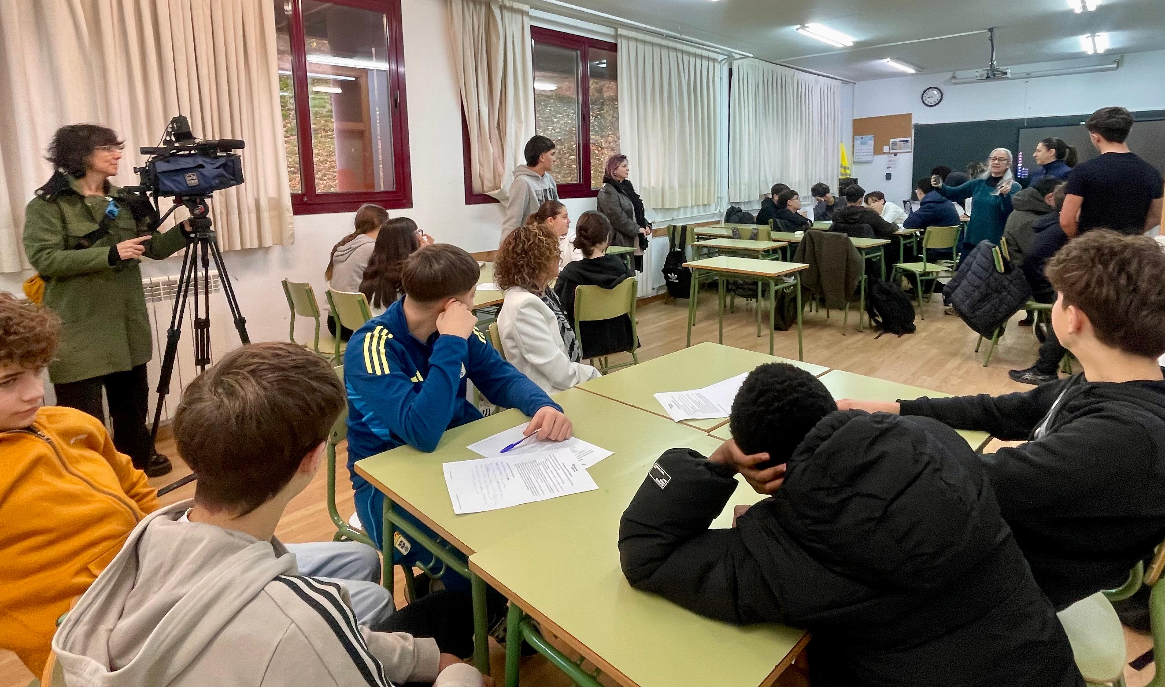 La consejera de Educación, Eva Ledo, durante el taller de periodismo celebrado por la Asociación de la Prensa de Oviedo en el Instituto Leopoldo Alas Clarín.