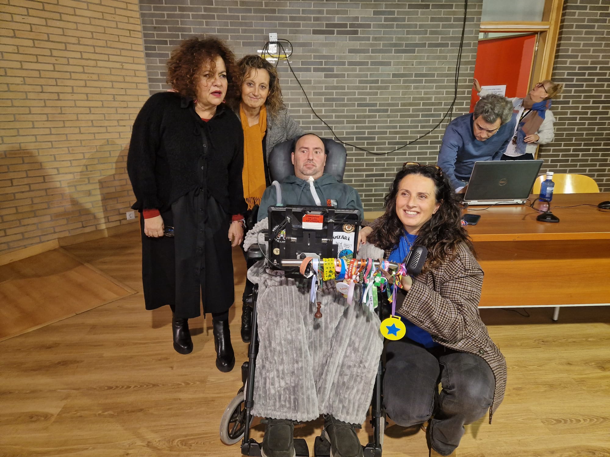 De izquierda a derecha, la consejera de Derechos Sociales y Bienestar, Marta del Arco; la consejera de Educación, Eva Ledo; el atleta y maestro asturiano enfermo de ELA, José Luis Capitán, y su esposa Teresa Pérez. Ambas consejeras han asistido hoy, en el IES de la Corredoria, a la charla 'Enamorados dELA vida', impartida por José Luis Capitán. IES de La Corredoria (C/ Francisco Pintado Fe, s/n). asisten a la charla Enamorados dELA vida, impartida por José Luis Capitán. IES de La Corredoria (C/ Francisco Pintado Fe, s/n).