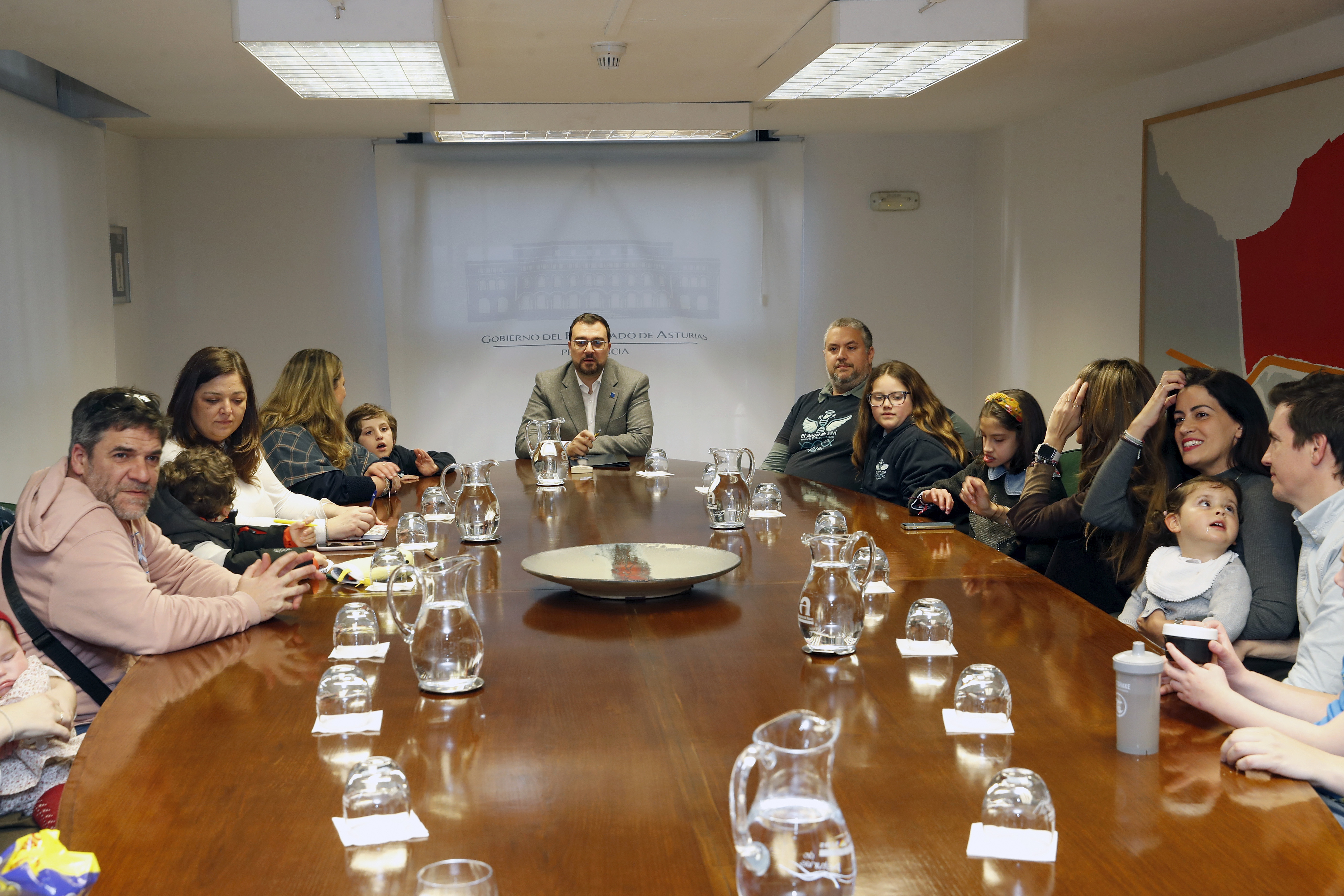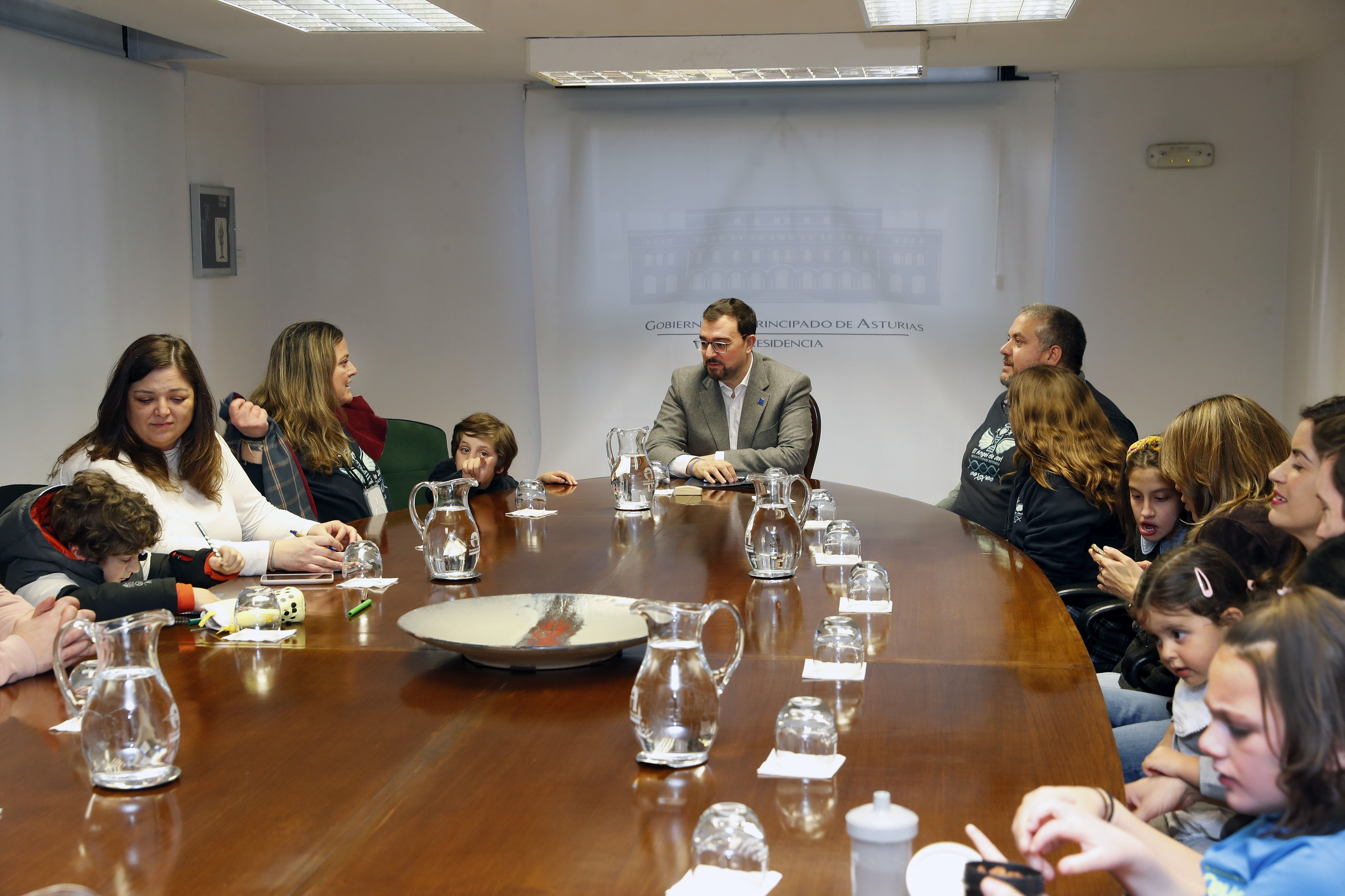 El presidente del Principado de Asturias, Adrián Barbón, ha recibido hoy a un grupo de representantes de la plataforma Hasta los Seis.