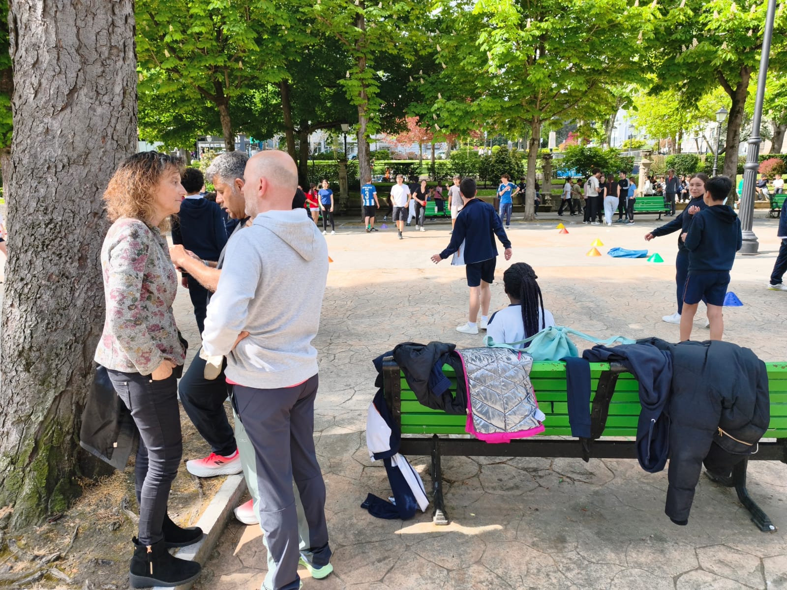 La consejera de Educación, Eva Ledo, conversa con los participantes en el Día de la Actividad Física en la calle, que se han celebrado hoy en Oviedo/Uviéu.
