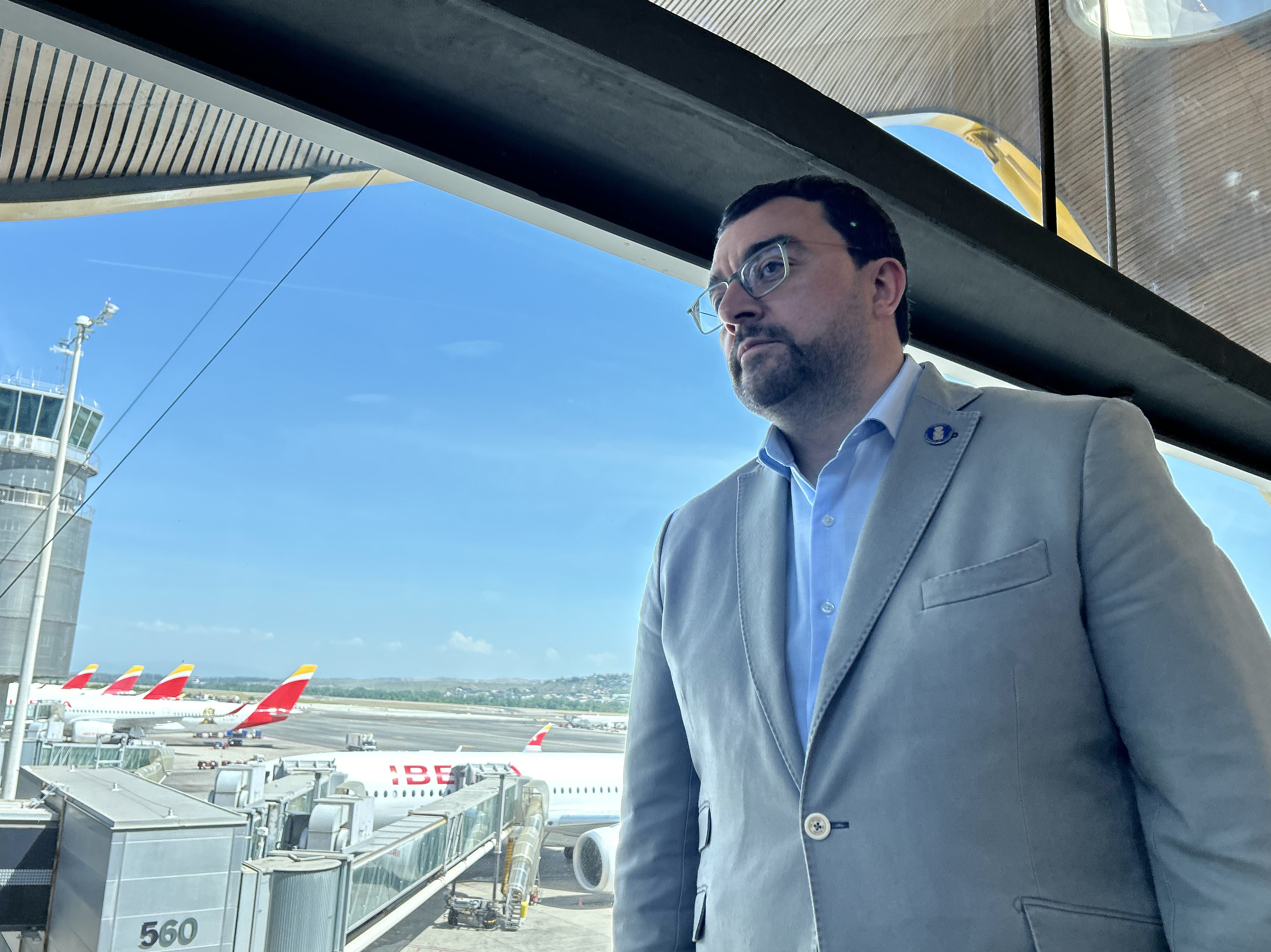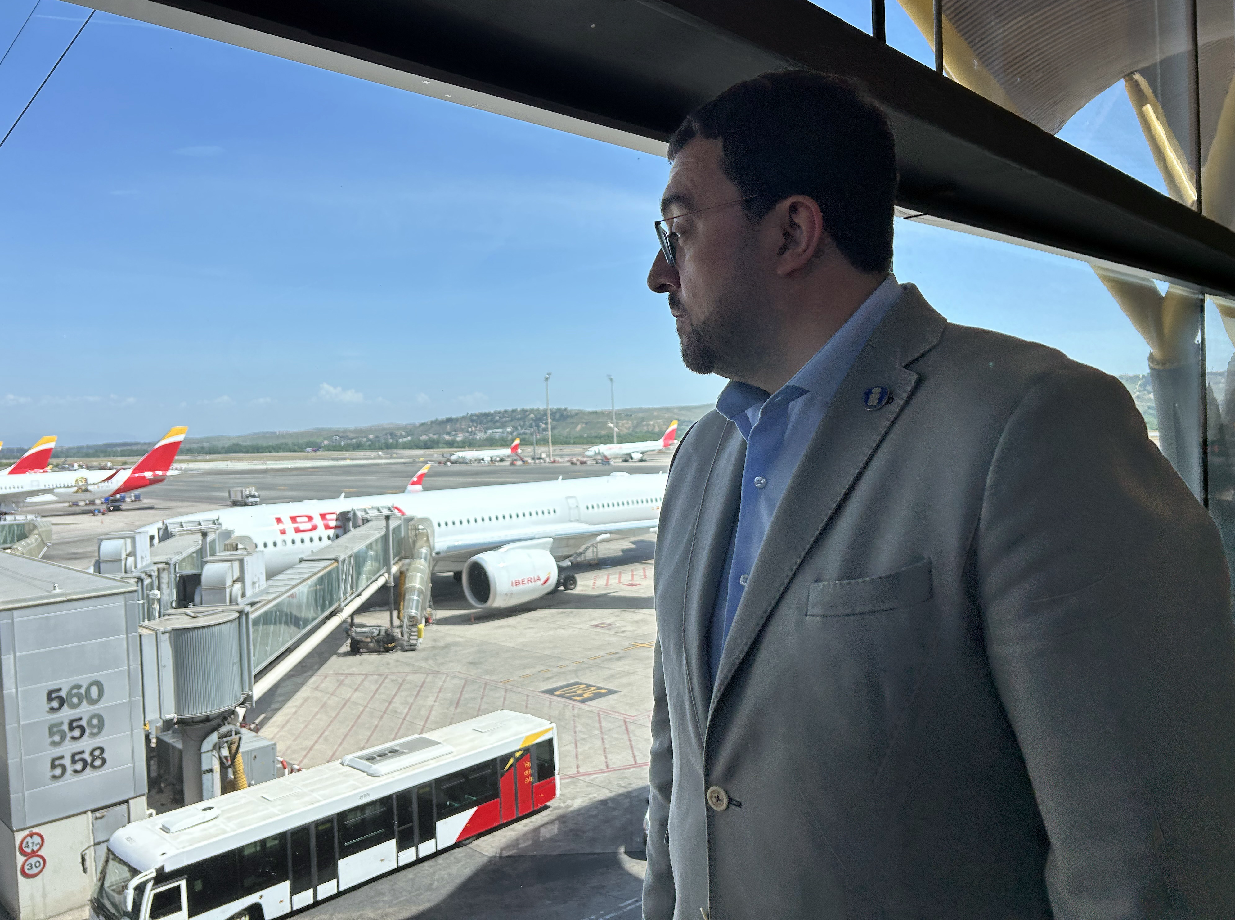 En las imágenes, el presidente en las instalaciones del Aeropuerto Adolfo Suárez Madrid-Barajas antes de volar a México.