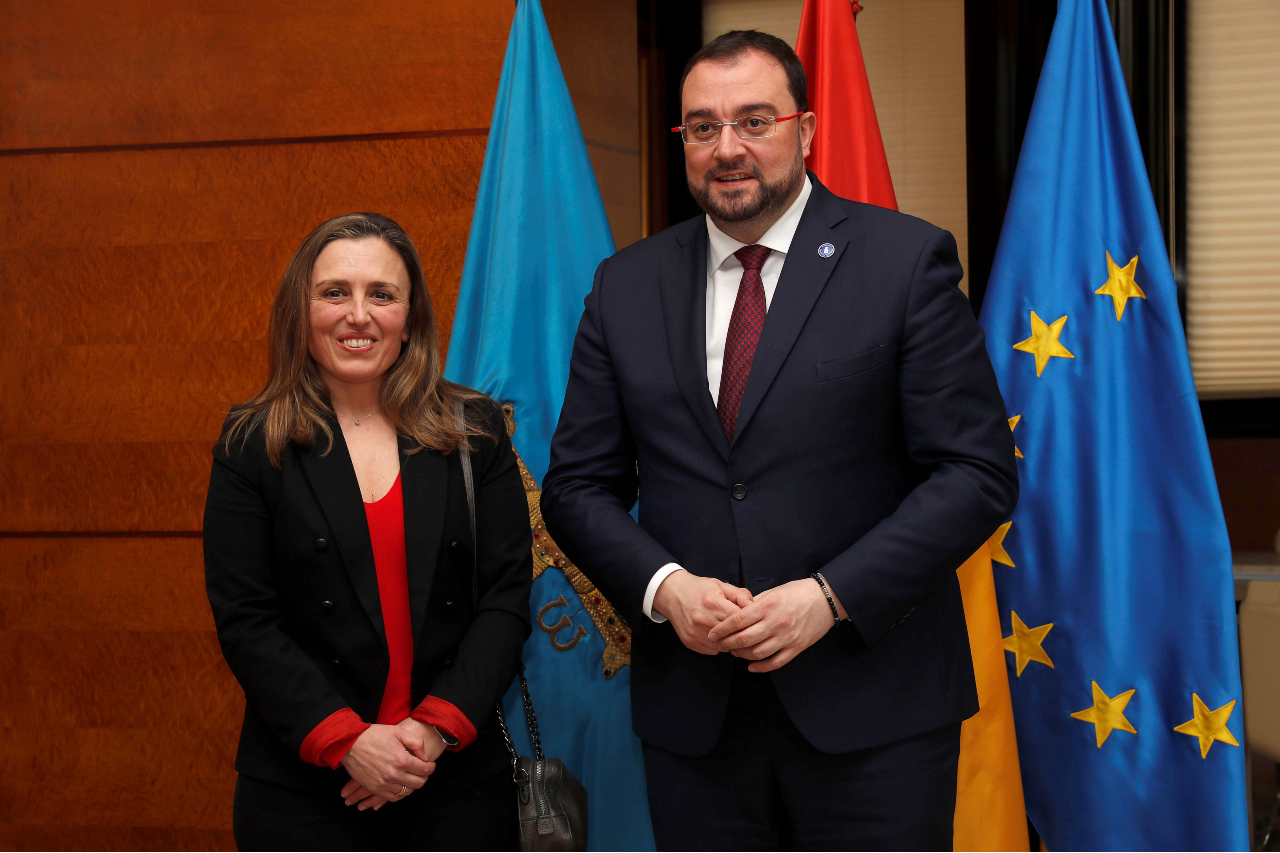 El presidente del Principado, Adrián Barbón, dentro de su agenda habitual de reuniones de trabajo, ha recibido hoy en su despacho a la presidenta de la Federación Asturiana de Empresarios (Fade), María Calvo.