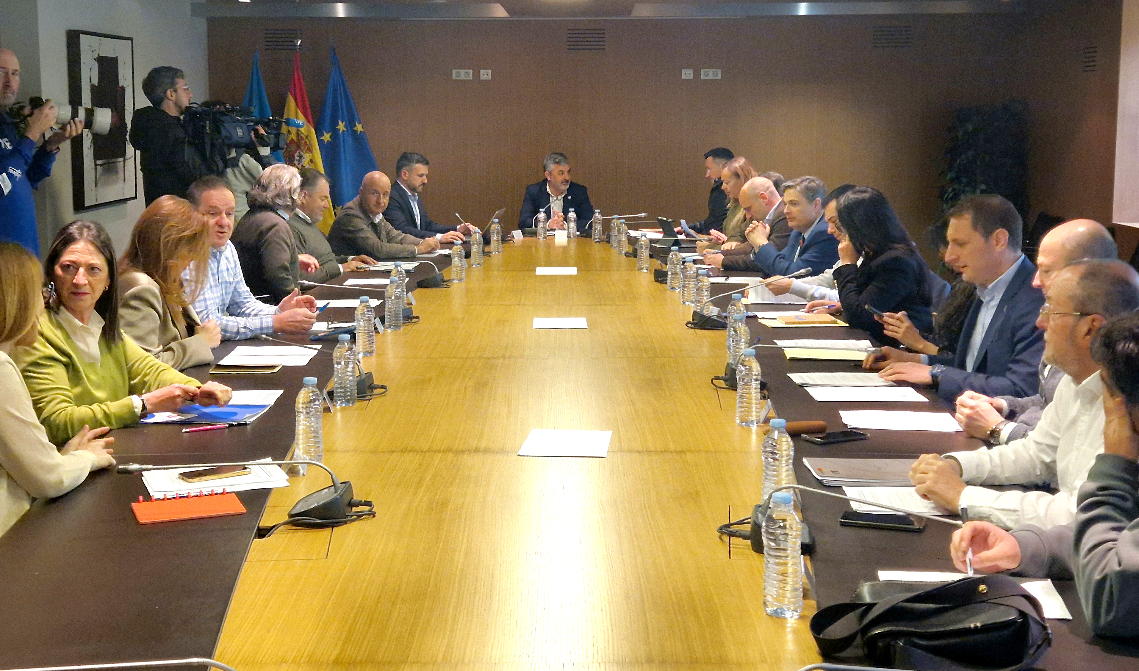 *El consejero de Movilidad, Medio Ambiente y Gestión de Emergencias, Alejandro Calvo (en la cabecera de la mesa en la imagen) preside la reunión de la Alianza por las Infraestructuras del Estado que Asturias necesita.