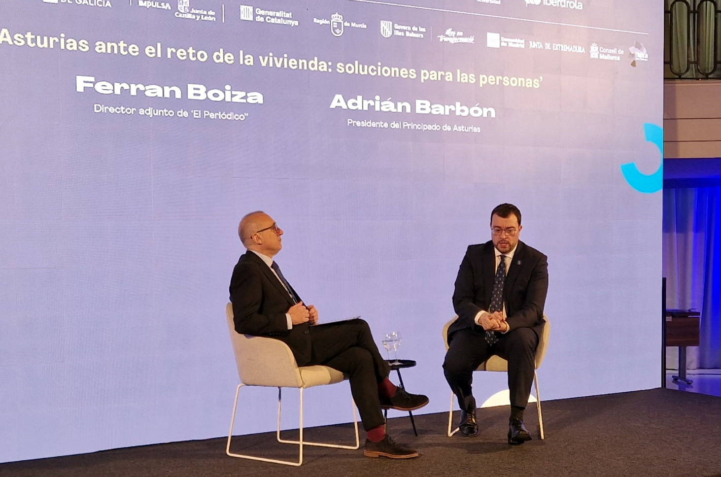 El presidente del Principado, Adrián Barbón, ha participado hoy, con el director adjunto de El Periódico, Ferrán Boiza, en el diálogo Asturias ante el reto de la vivienda: soluciones para las personas, que se enmarcan en el evento España 360º. Primer encuentro de comunidades autónomas, organizado por el Grupo Prensa Ibérica.