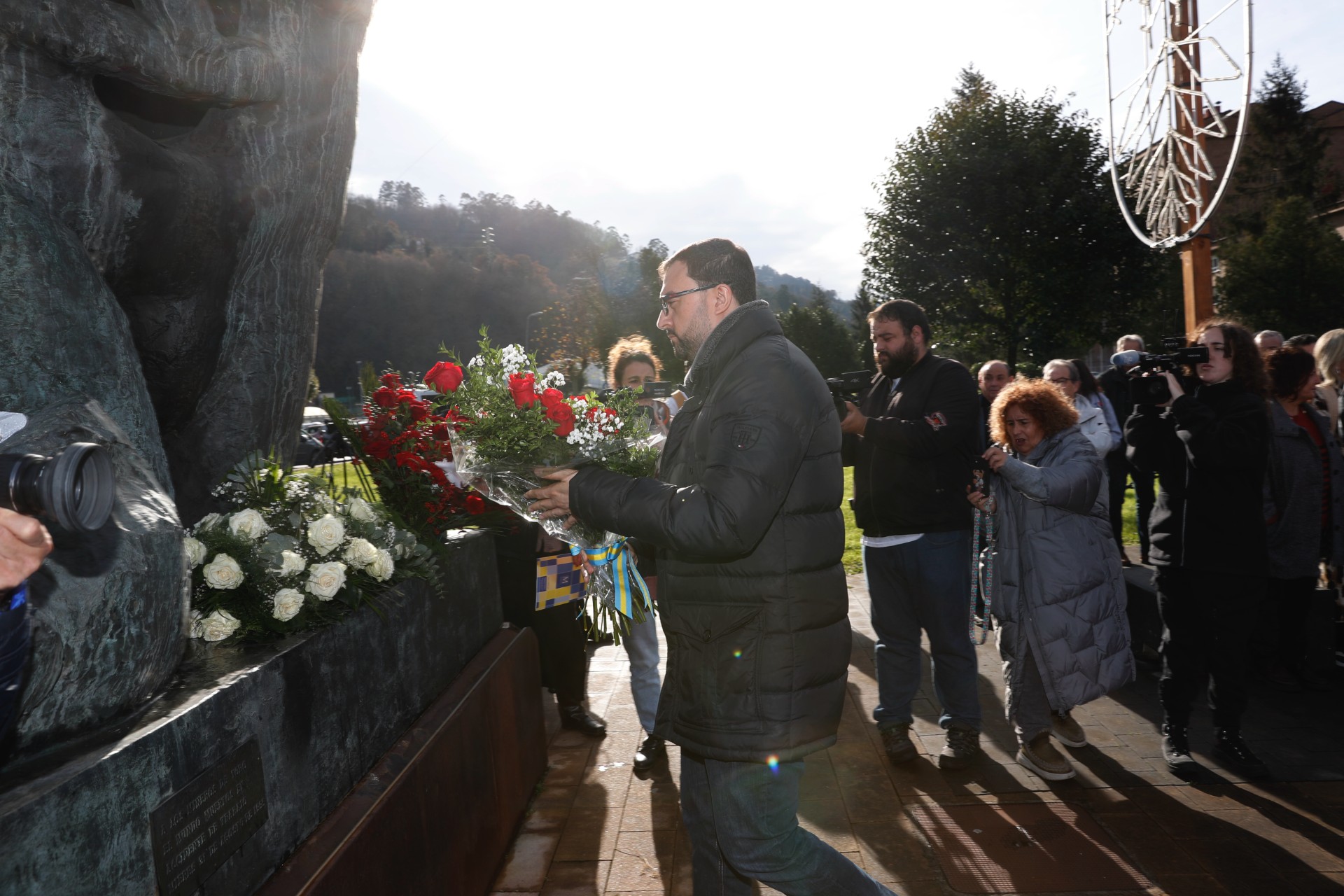 El presidente del Principado de Asturias, Adrián Barbón, ha intervenido en el homenaje a los mineros fallecidos que se celebra con motivo de la festividad de Santa Bárbara, y realizado una ofrenda floral ante el Monumento al Minero, en Mieres.