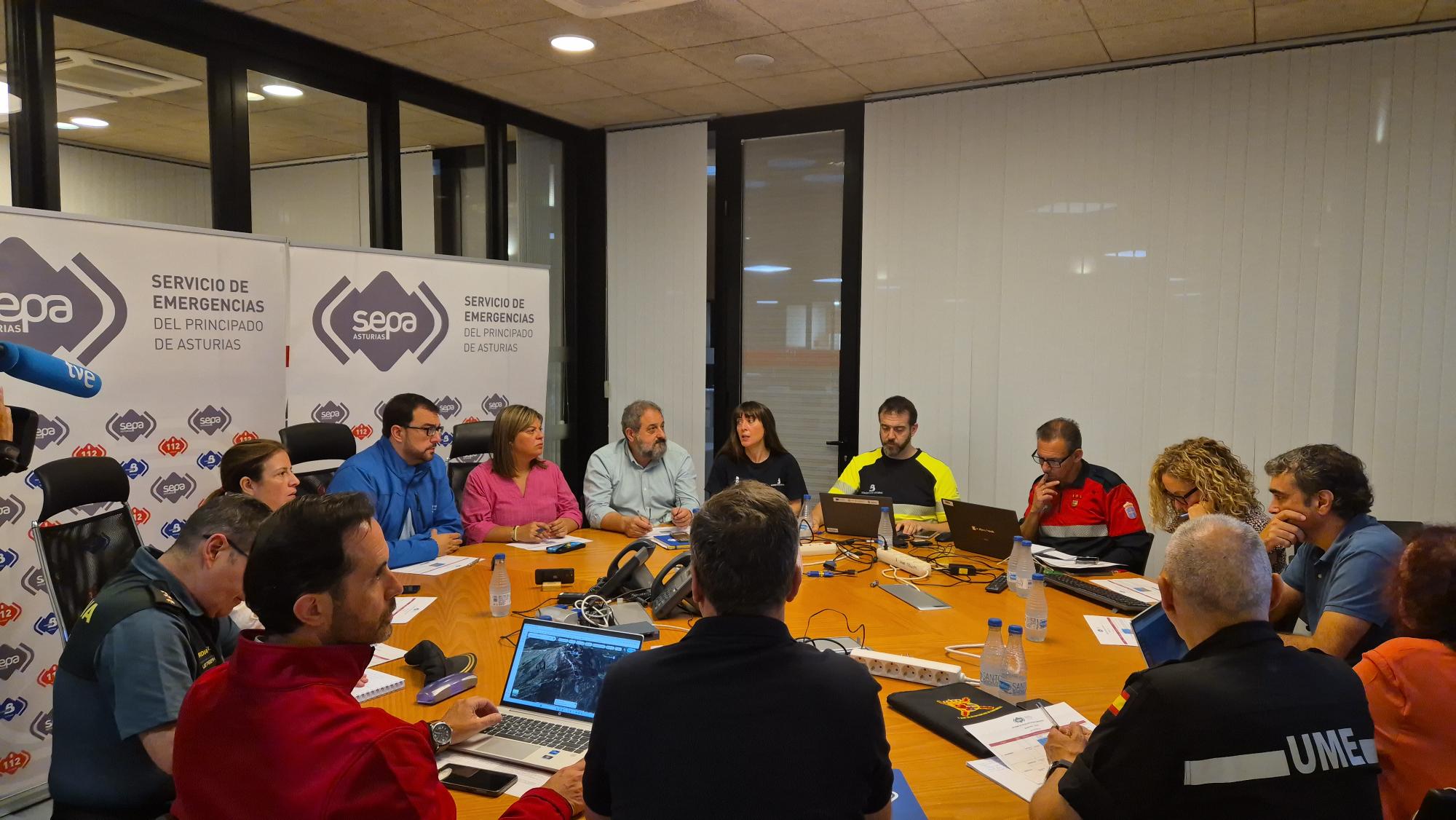 El presidente del Principado, Adrián Barbón, durante la reunión del comité crisis contra los incendios forestales.