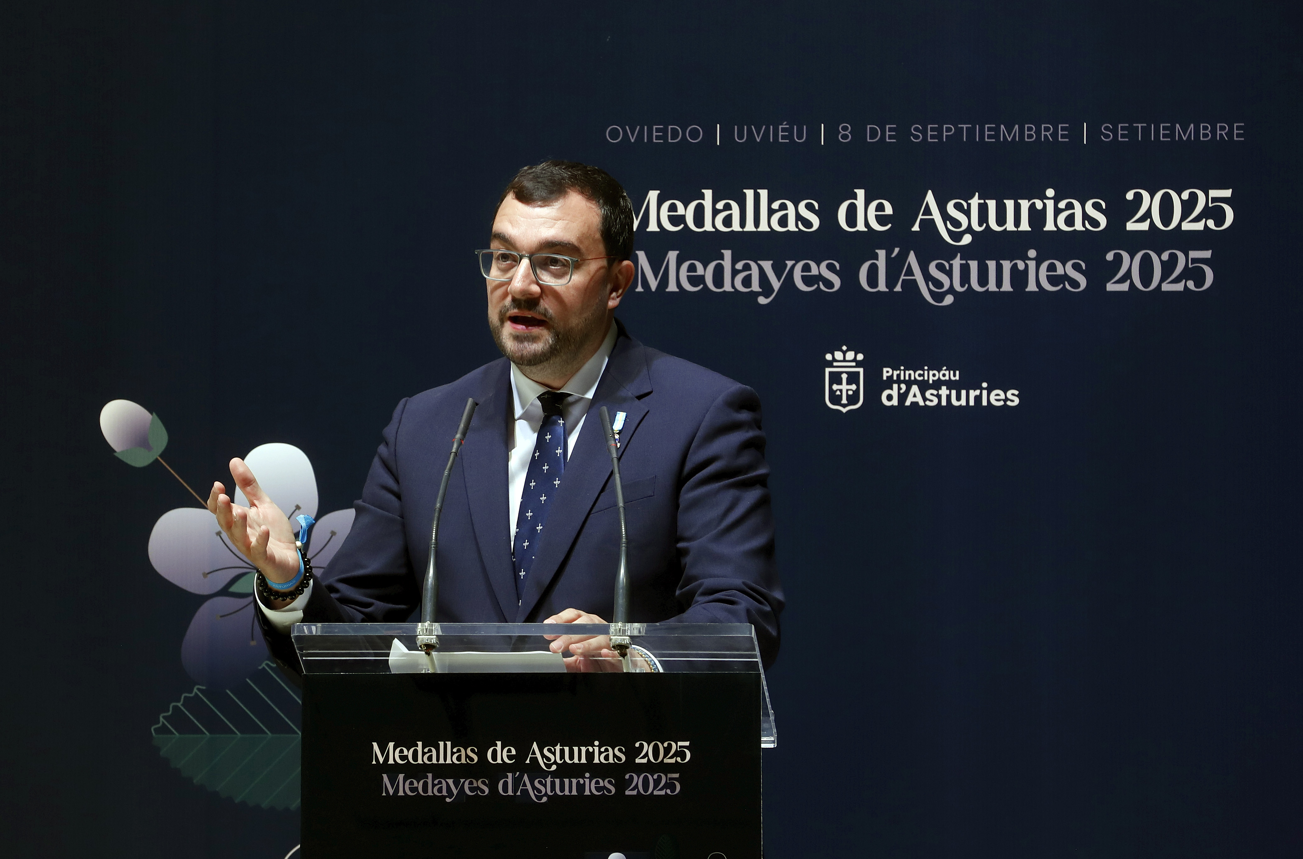 En su intervención durante el acto institucional de entrega de las Medallas de Asturias 2025, al que han asistido también los miembros del Consejo de Gobierno y que se ha celebrado en el Auditorio Príncipe Felipe de Oviedo/Uviéu, el presidente ha destacado que el Día de Asturias es una jornada que une a todos los asturianos “en el orgullo de pertenencia”, un sentimiento que nace de “sabernos parte de una larguísima historia, de una comunidad viva y moderna y, también, de un proyecto de futuro”.