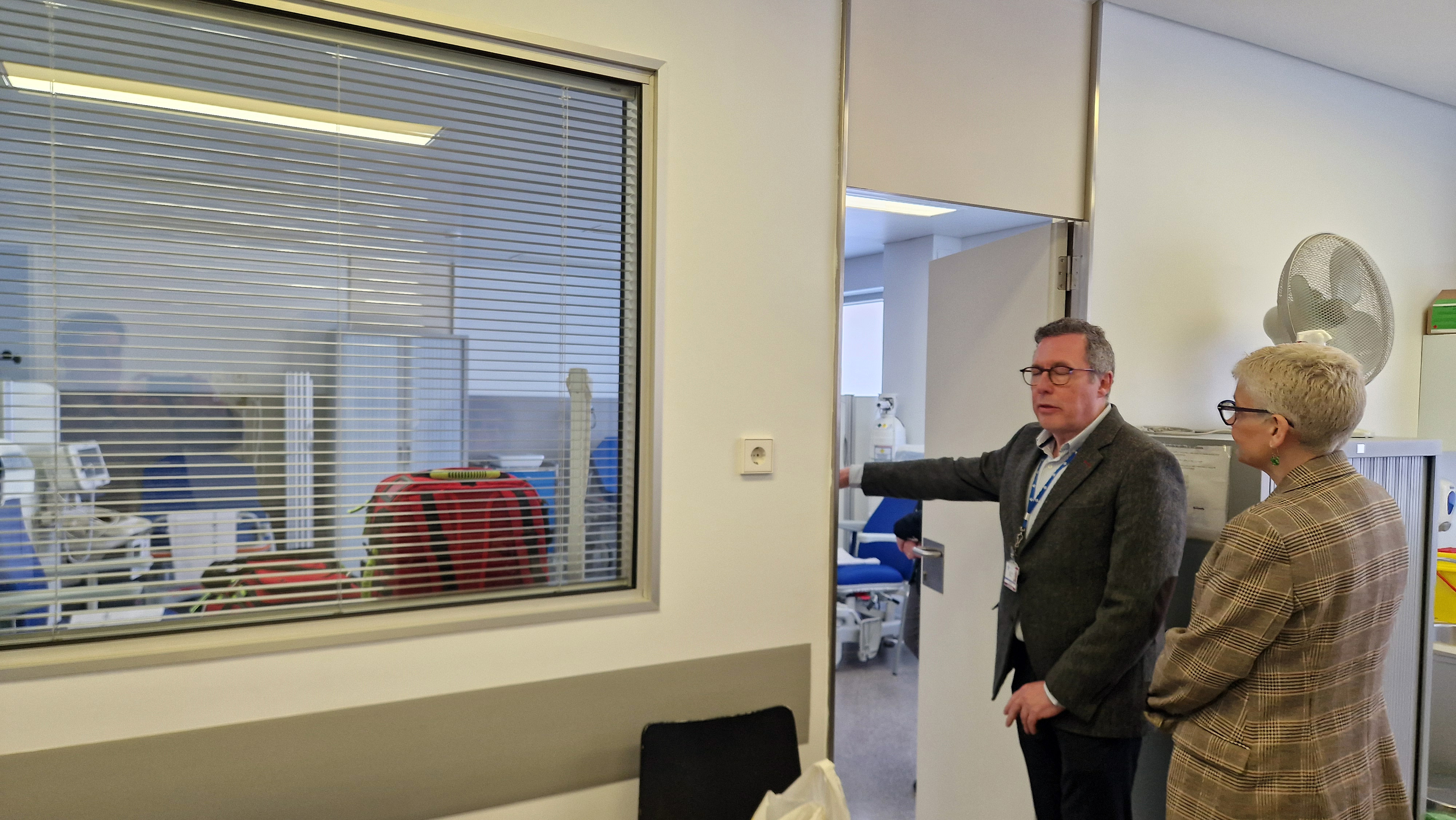 - Dispone de dos consultas de medicina, dos de enfermería y una sala de observación y tratamientos con dos camillas de exploración, sillones, monitorización, oxígeno, ecógrafo y desfibrilador