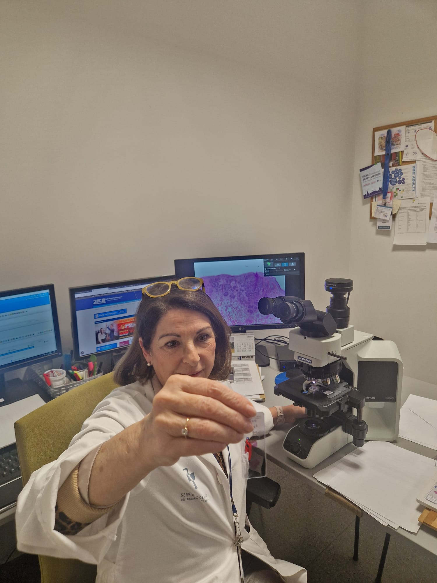 *Pie de foto: de izquierda a derecha, las dermatólogas Paula Penanes, Jimena Carrero y Rebeca Pérez; la anatopatóloga Inés Gomez de la Riva; la jefa del Servicio de Anatomía Patológica, Ana María Gutiérrez Palacios; el dermatólogo Álvaro Iglesias y la técnica del servicio de Anatomía Patológica, Bárbara Fernández Hevia.