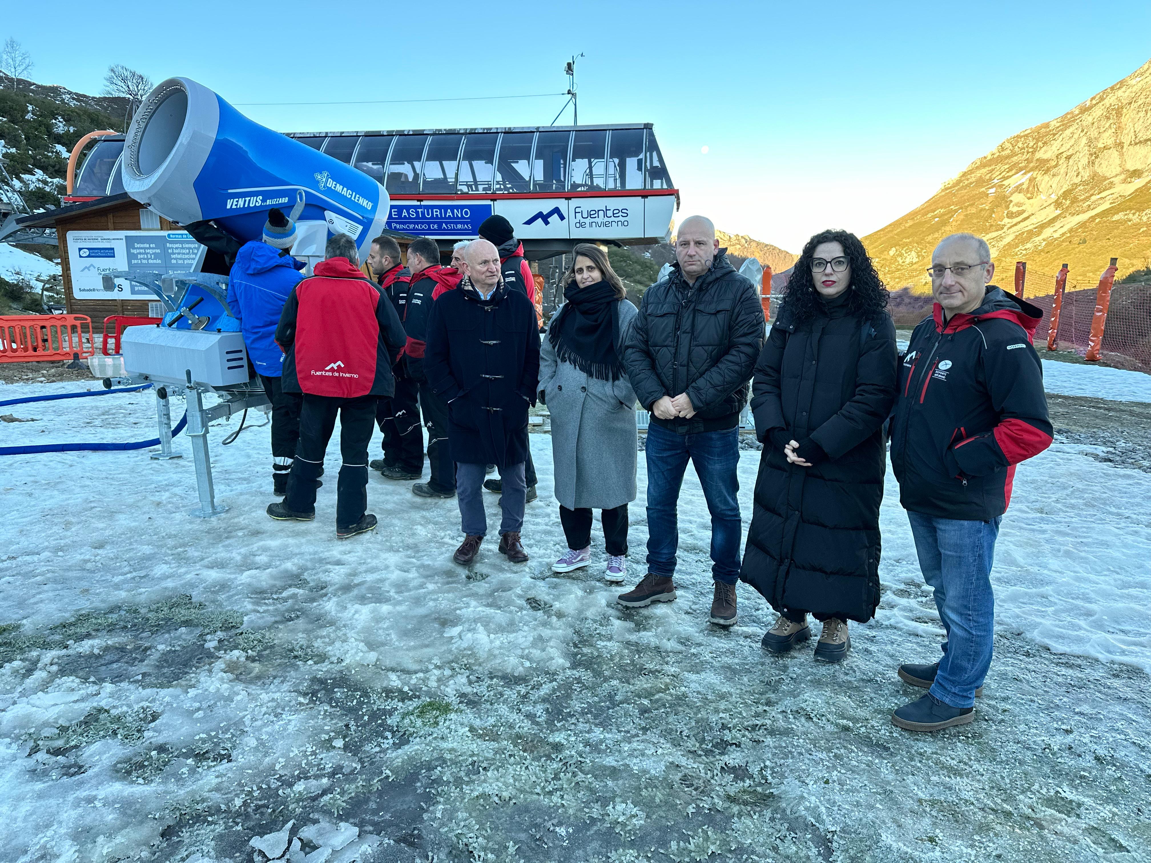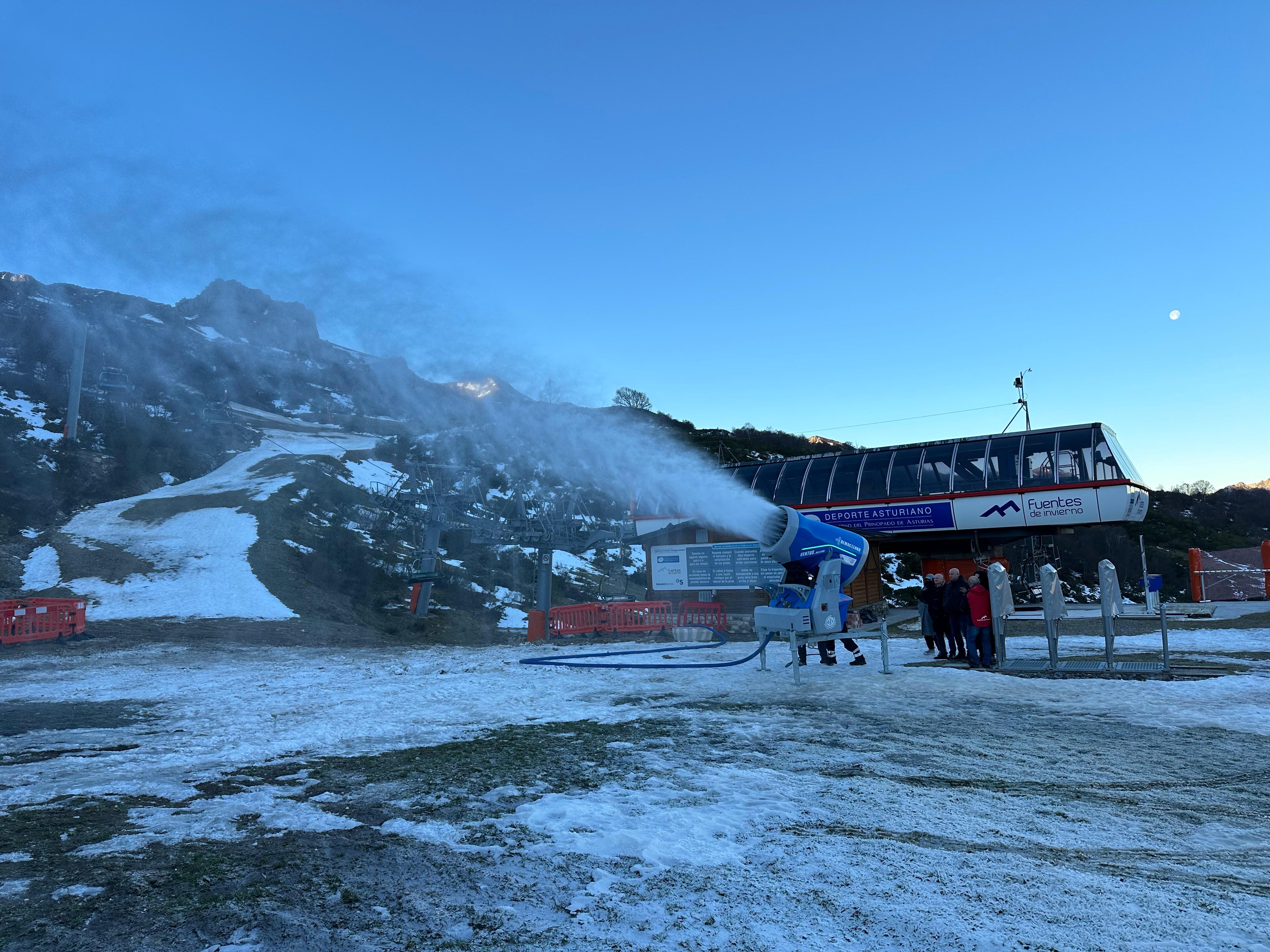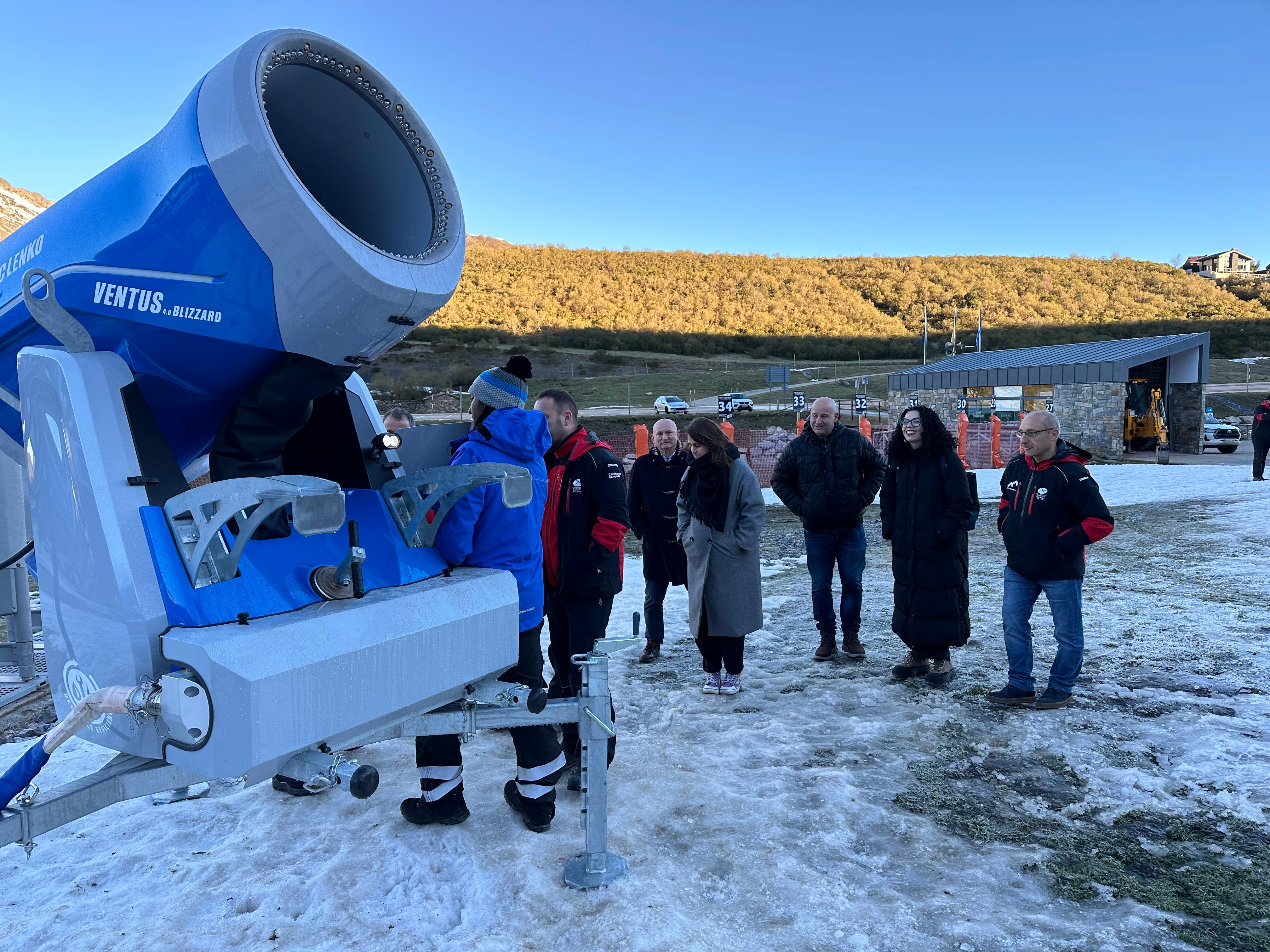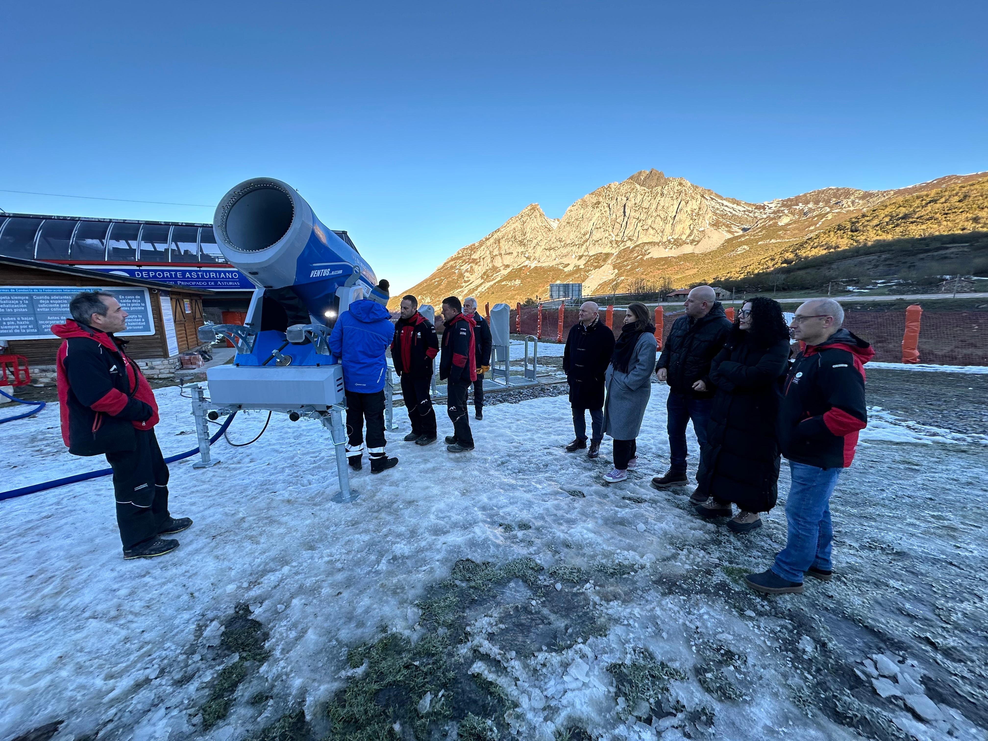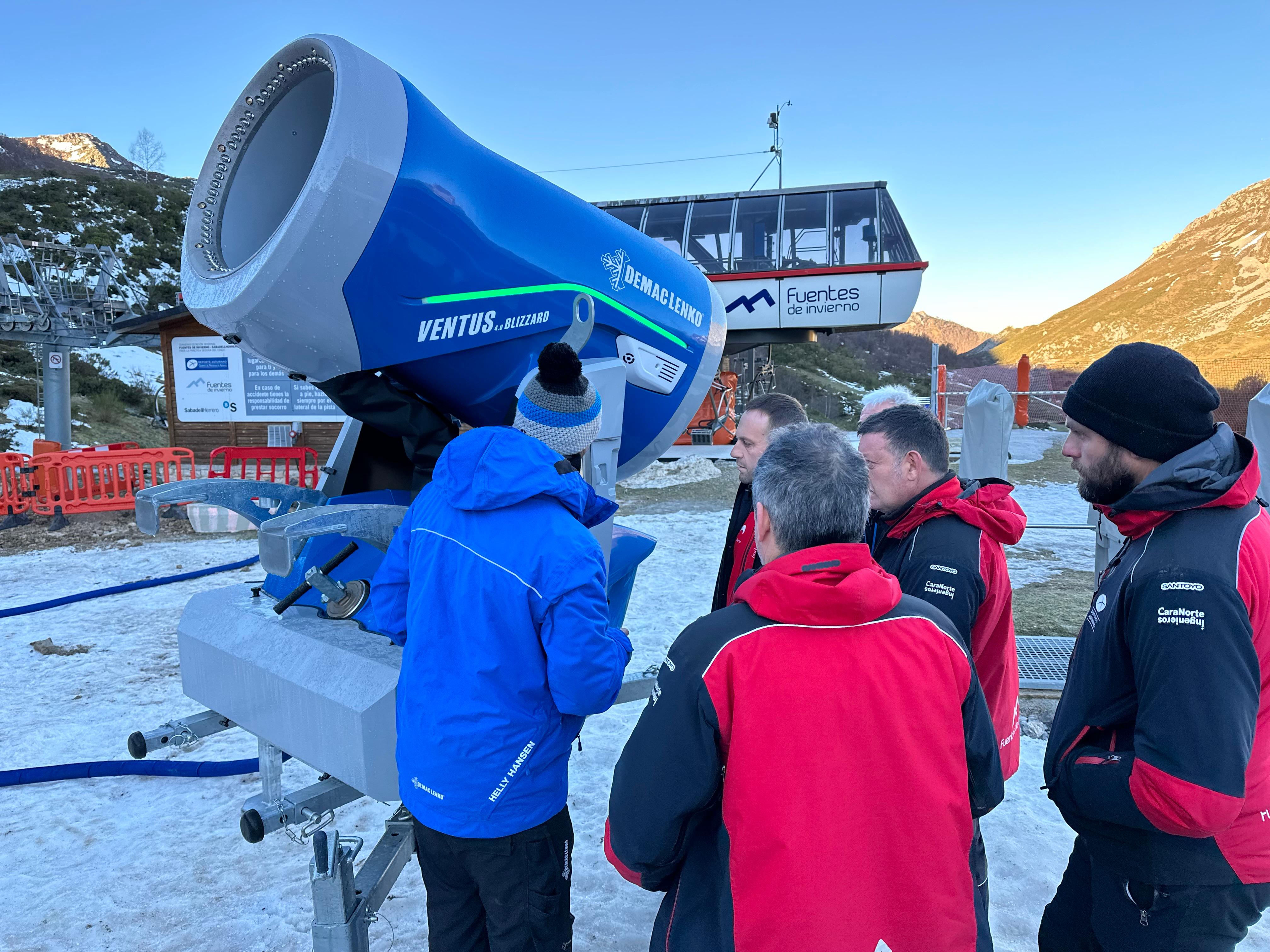La empresa Teleféricos y Nieve S.L., ha cedido gratuitamente el cañón de nieve para su ensayo en la estación asturiana. La compañía ha explicado los detalles del innivador Ventus 4.0 Blizzard AMK-P al personal, con el objetivo de que conozca su funcionamiento, necesidades y datos concretos para futuros proyectos en Fuentes de Invierno.