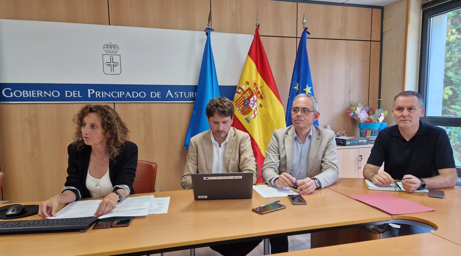 **En la imagen, de izquierda a derecha, la consejera de Educación, Eva Ledo, acompañada de los directores generales de Inclusión Educativa y Ordenación, David Artime; de Infraestructuras y Tecnologías Educativas, Julio Vallaure, y de Formación Profesional, Ángel Balea, en la reunión con las direcciones de Secundaria y otras enseñanzas.