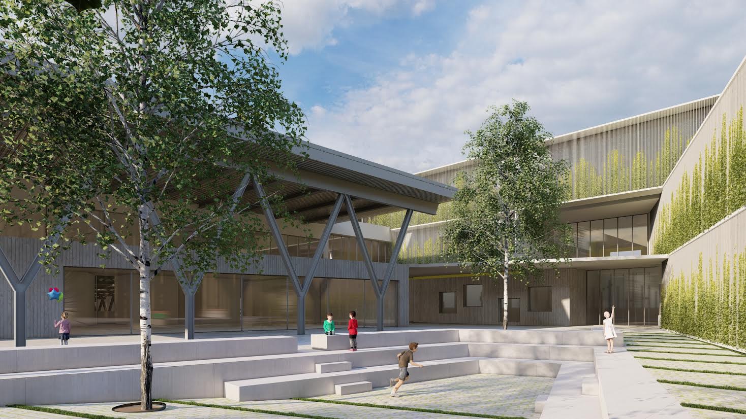 Dispondrá, asimismo, de espacios educativos heterogéneos, transparentes y flexibles, que estimulen y fomenten la convivencia del alumnado. Entre ellos destacan las súperaulas, que duplican el tamaño de las convencionales; la plaza interior situada en el vestíbulo principal del edificio y una zona de reuniones denominada fuego de campamento, que contará con un graderío.