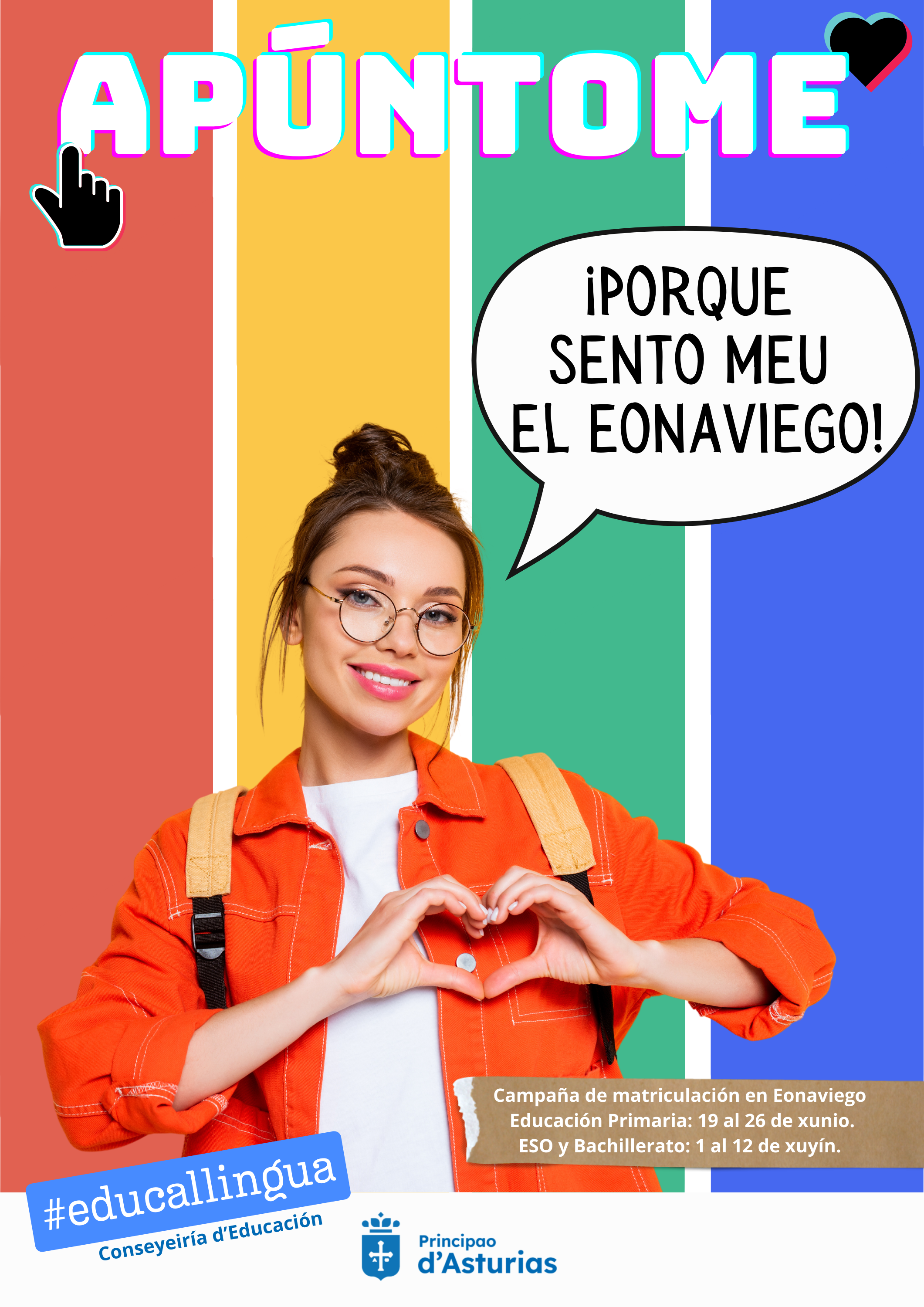 Esta campaña responde el compromiso da Conseyeiría d’Educación en promover el uso, a difusión y el enseño del asturiano y el eonaviego, en cumprimento da Llei 1/1998, del 23 de marzo, ademáis de potenciar a pluralidá llingüística y cultural del Principao.