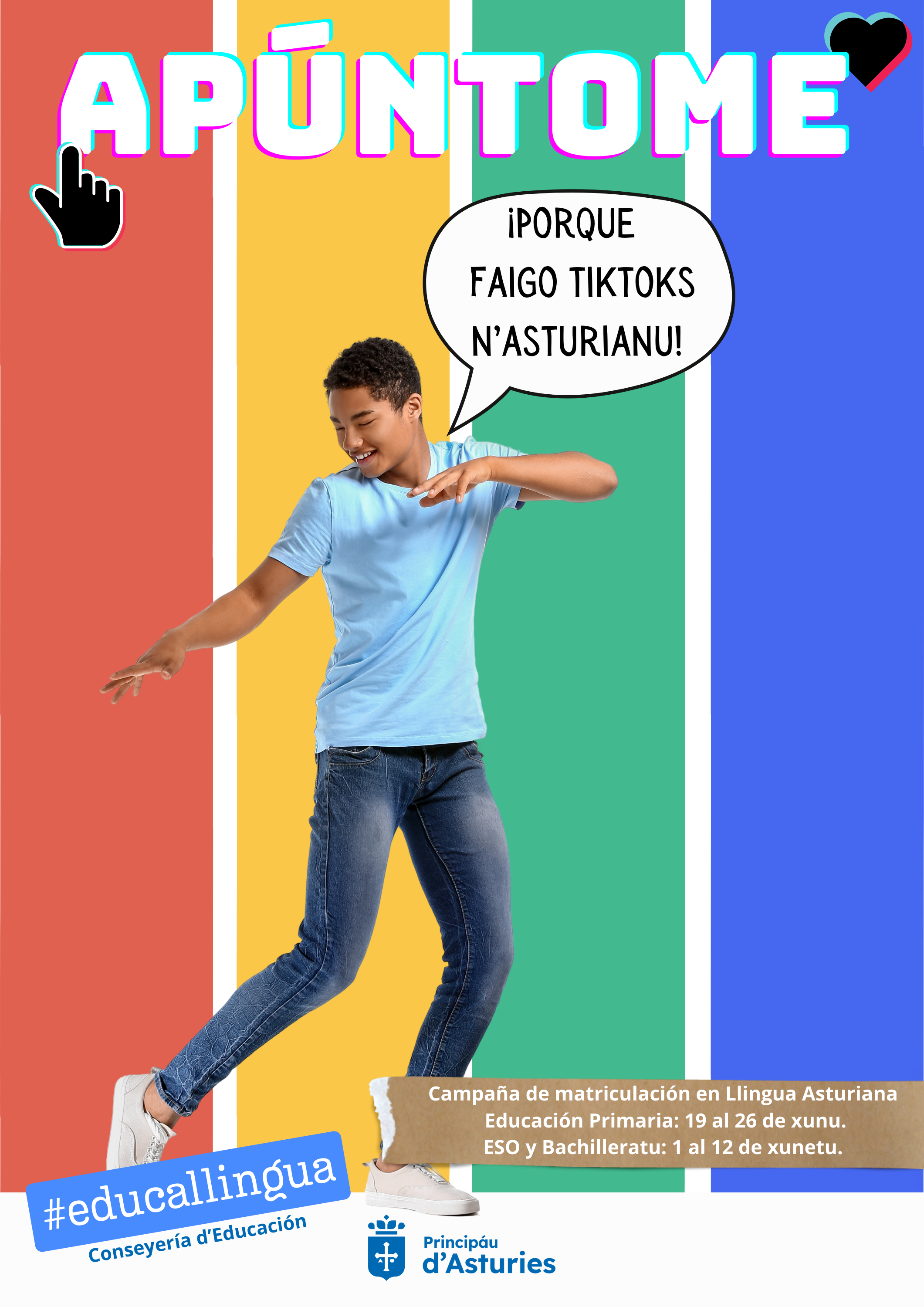 Esta campaña respuende al compromisu de la Conseyería d’Educación en promover l’usu, la difusión y la enseñanza del asturianu y l’eonaviegu, en cumplimientu de la Llei 1/1998, de 23 de marzo, amás de potenciar la pluralidá llingüística y cultural del Principáu.