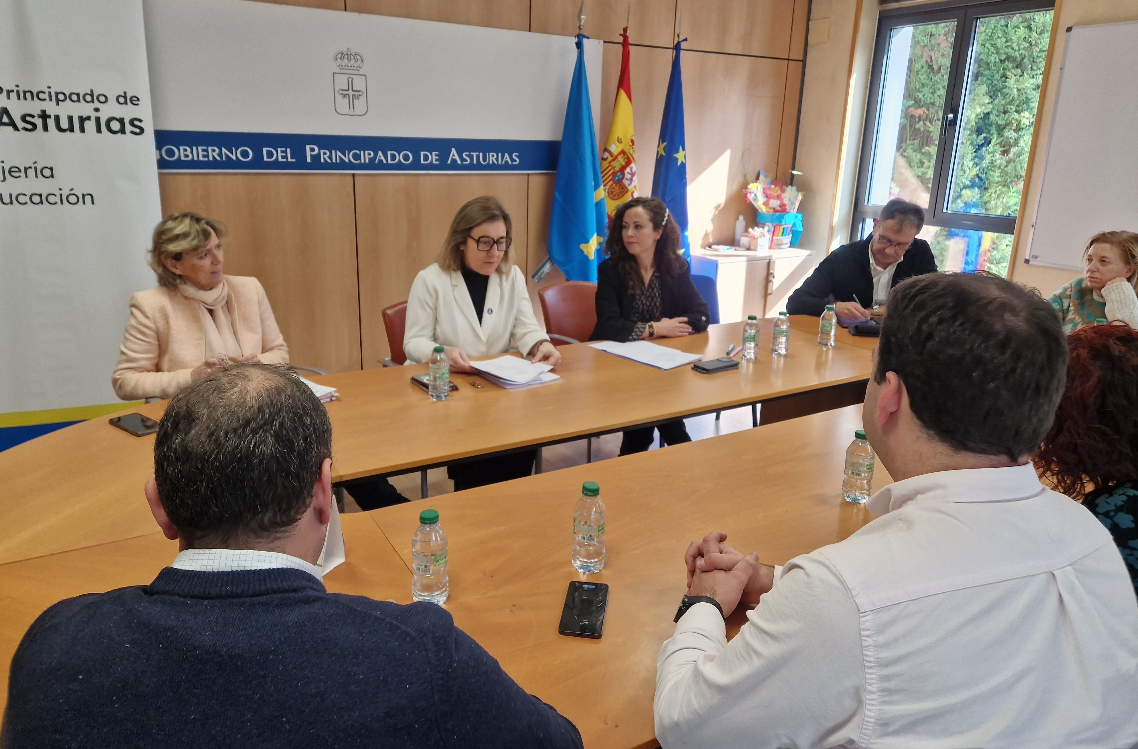 *Pie de foto: en el frente de la mesa en la imagen, la secretaria general técnica de la Consejería de Educación, Begoña Fernández; la consejera de Educación, Lydia Espina, y la directora general de Centros, Red 0-3 y Enseñanzas Profesionales, Cristina Blanco, durante la reunión con la Comisión Ejecutiva de la Federación Asturiana de Concejos (FACC).